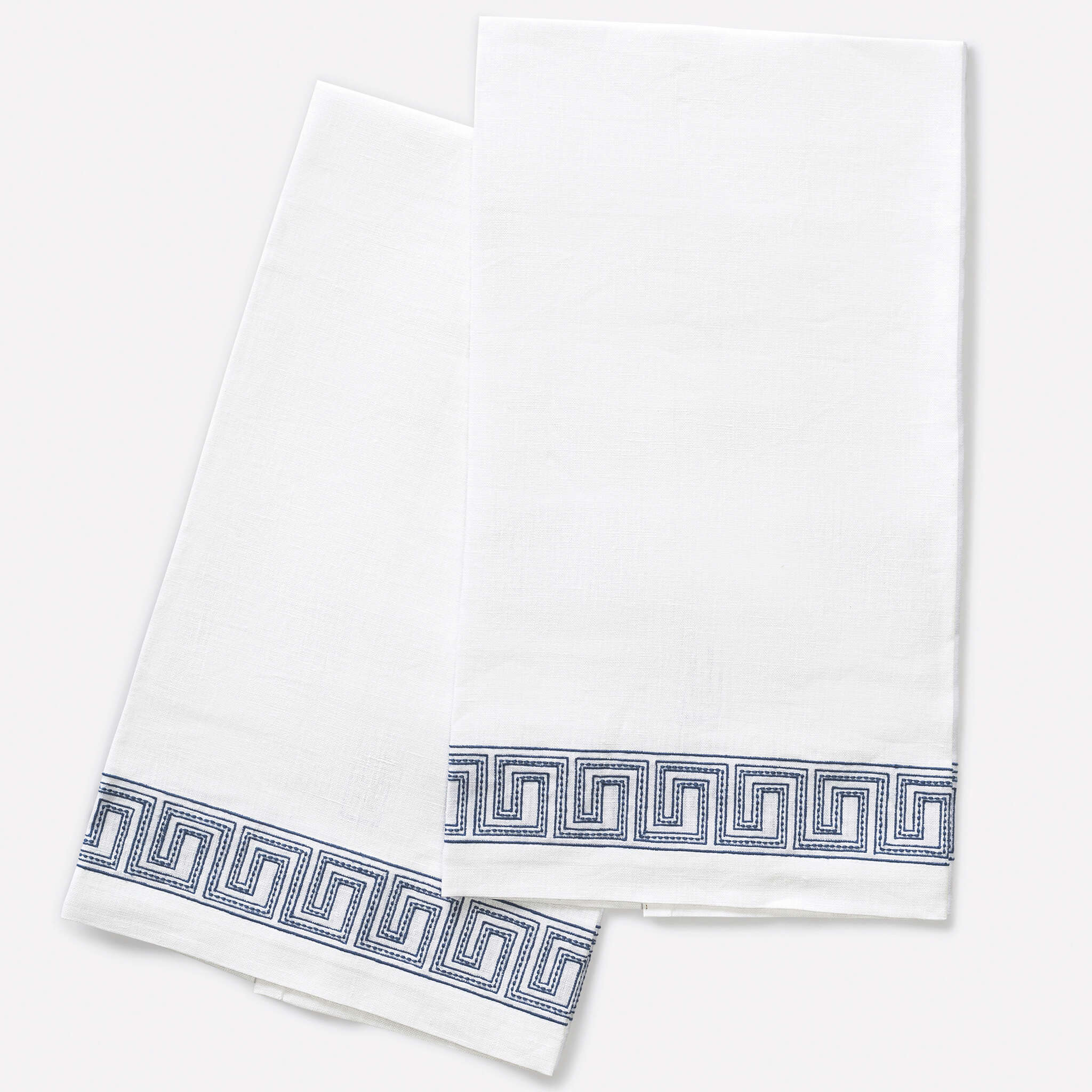 Inspired by an intricately beaded Schumacher tape, our boldly embroidered Ophelia Guest Towels embody a traditional Greek key pattern at a larger scale with a bespoke sensibility. Crafted on luscious linen, these striking towels make a statement in any bathroom.