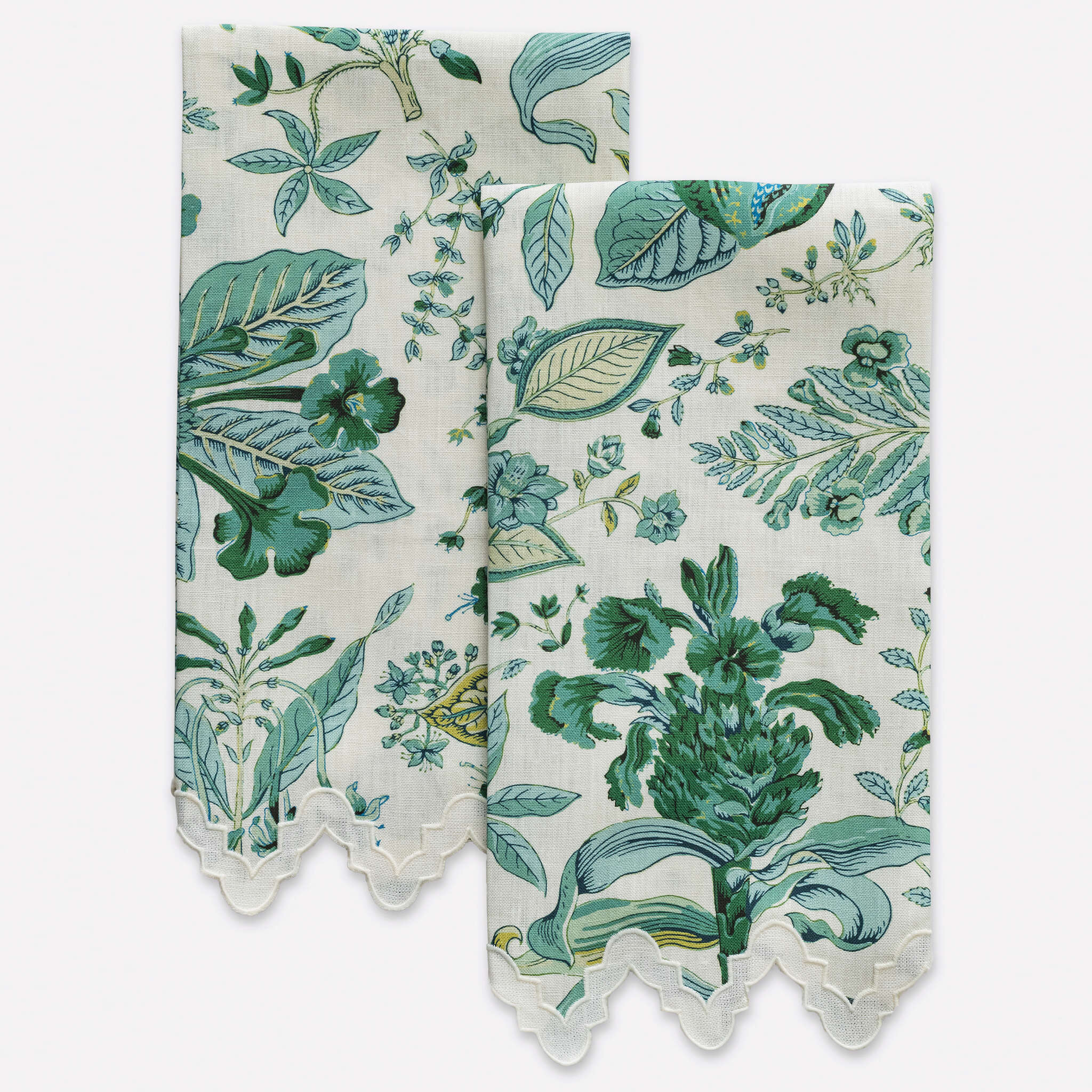 Alive with vivid florals and lush foliage, the Matouk Schumacher Pomegranate print is reimagined in a guest towel on signature linen, finished with a geometric zig-zag silhouette in coordinating thread. With a rich botanical feel in vivid hues, it brings a sense of fantasy and whimsy to powder rooms and guest rooms alike.