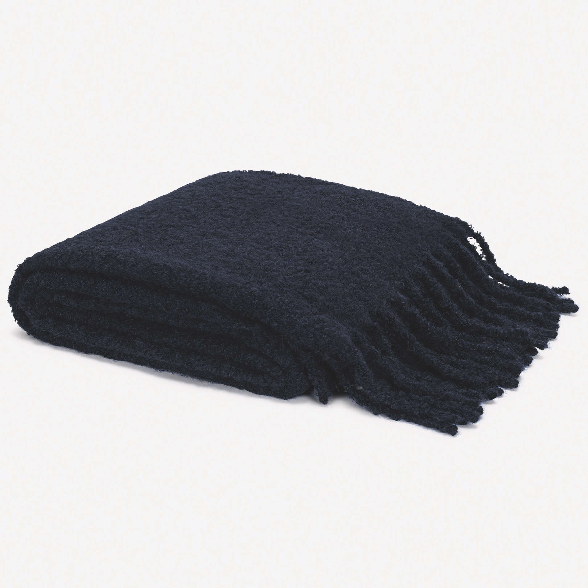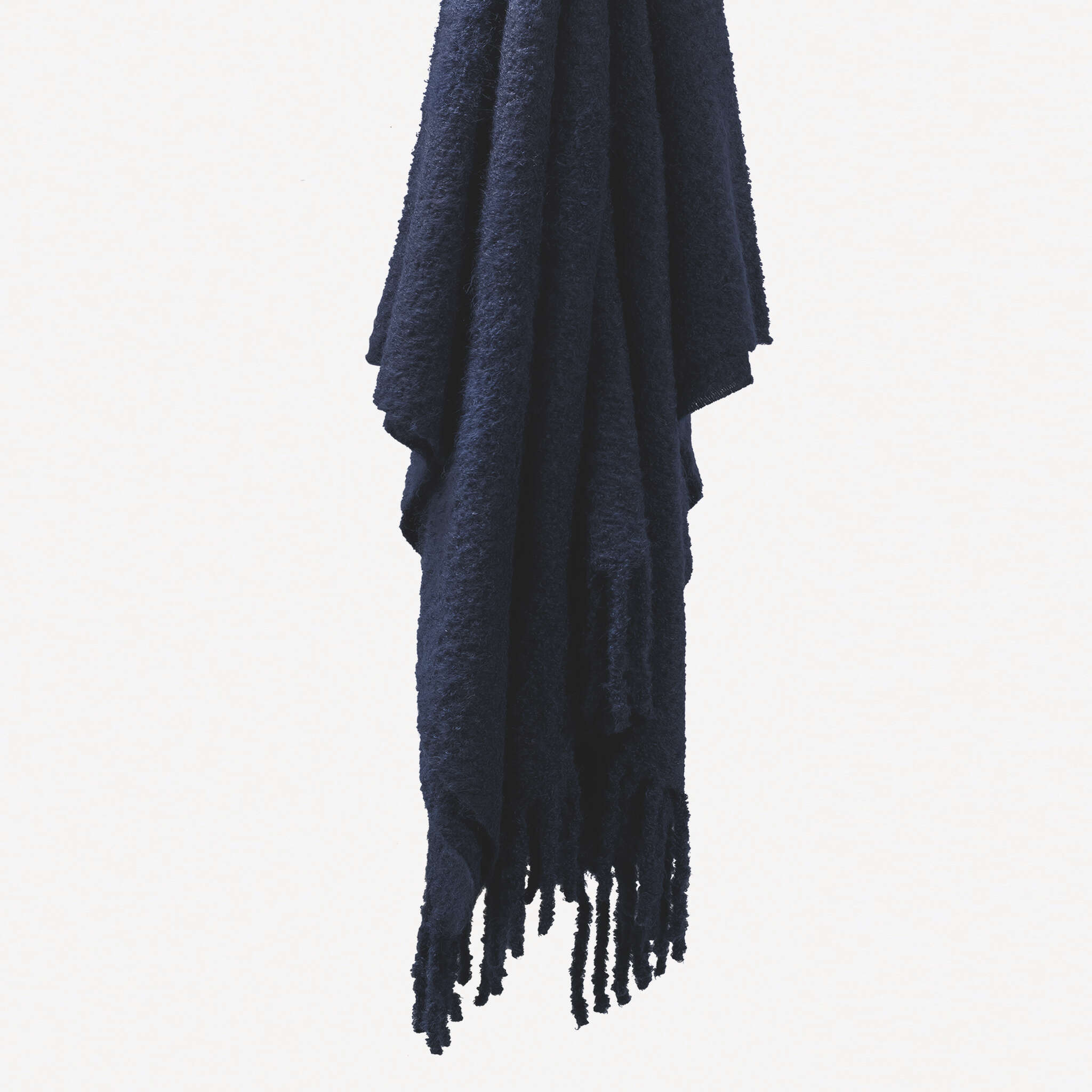 Delightfully chunky and luxuriously cozy, the Poncho throw features hand-knotted fringed edges for a comforting, breathable weighted feel and a coat-like warmth for cooler months. Crafted in Peru from Suri alpaca bouclé, it offers both exceptional strength and softness.