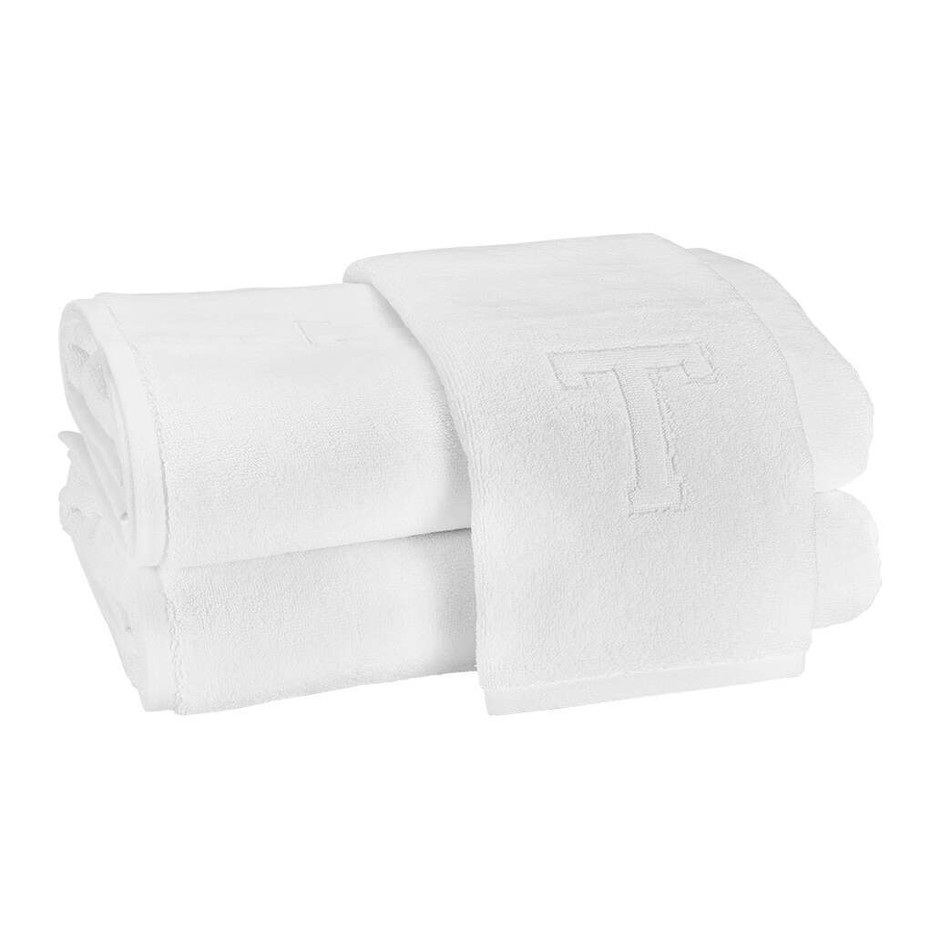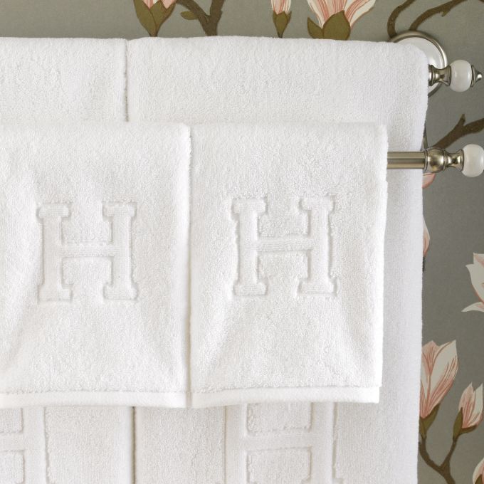 Auberge offers a simple yet striking alternative to monogramming, carefully crafting an uppercase letter in bold relief on soft, long-staple cotton terry towels. The collection completes a welcoming guest bath in style or makes a thoughtful gift for a new home.