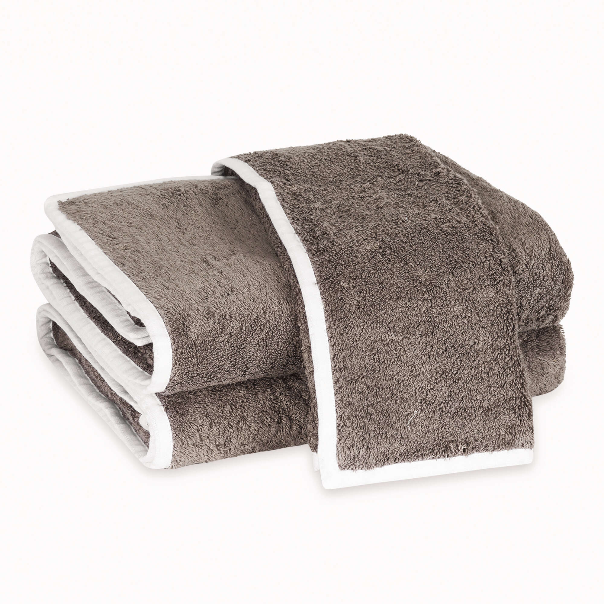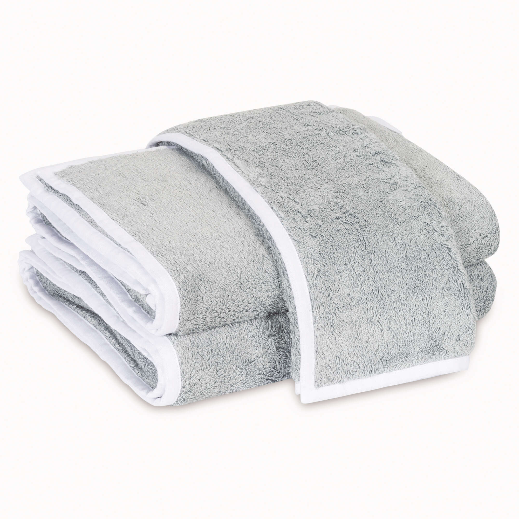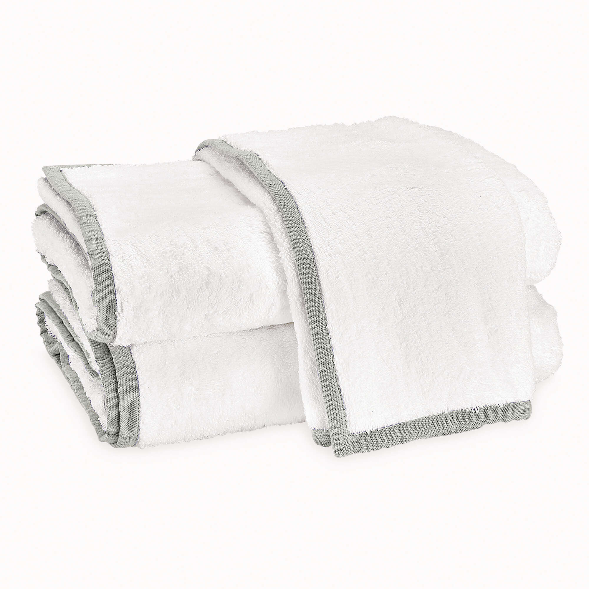 Our lush Enzo towels feature Cairo long-staple cotton terry finished with half-inch linen piping - smartly mitered at the corners - in a handsome palette of colors.