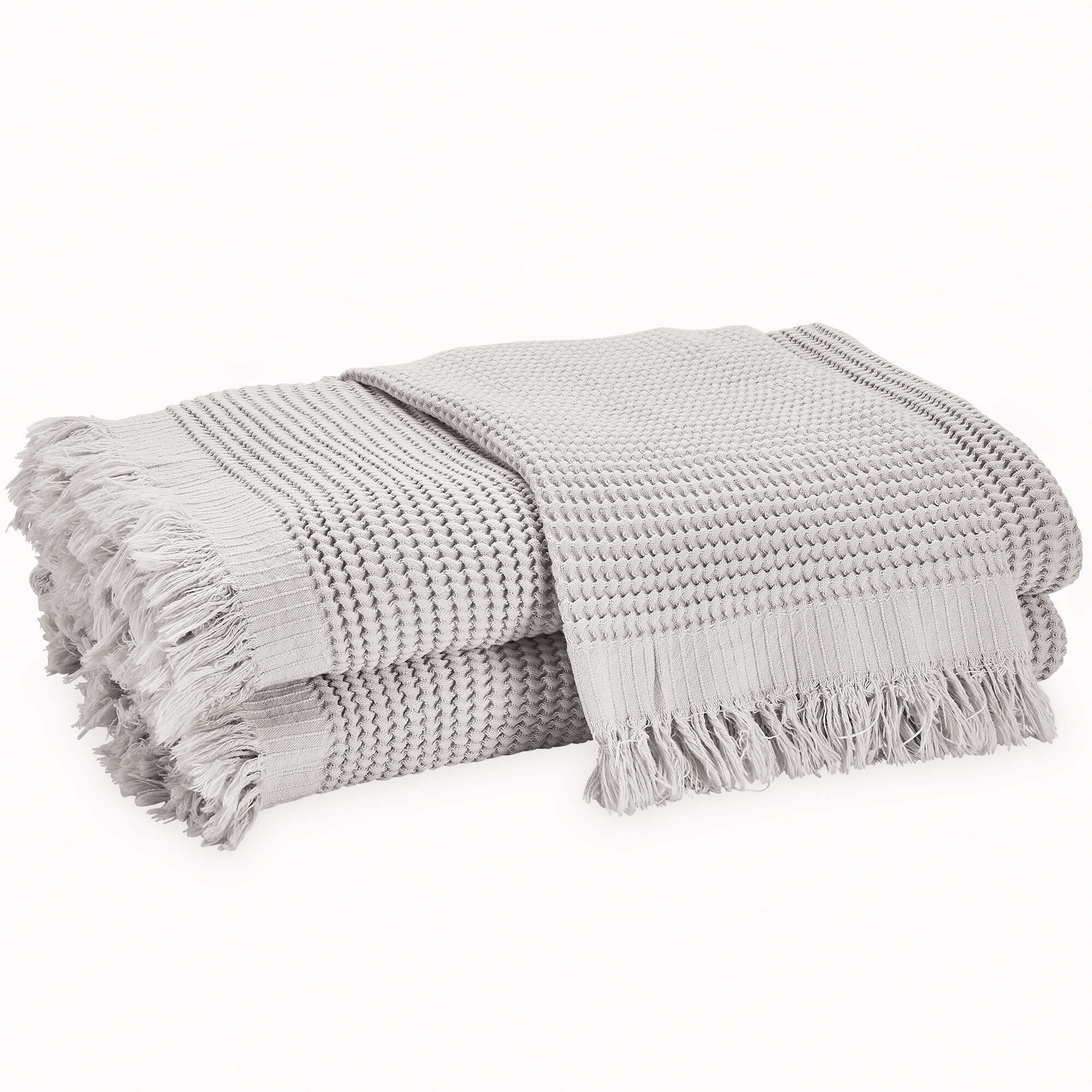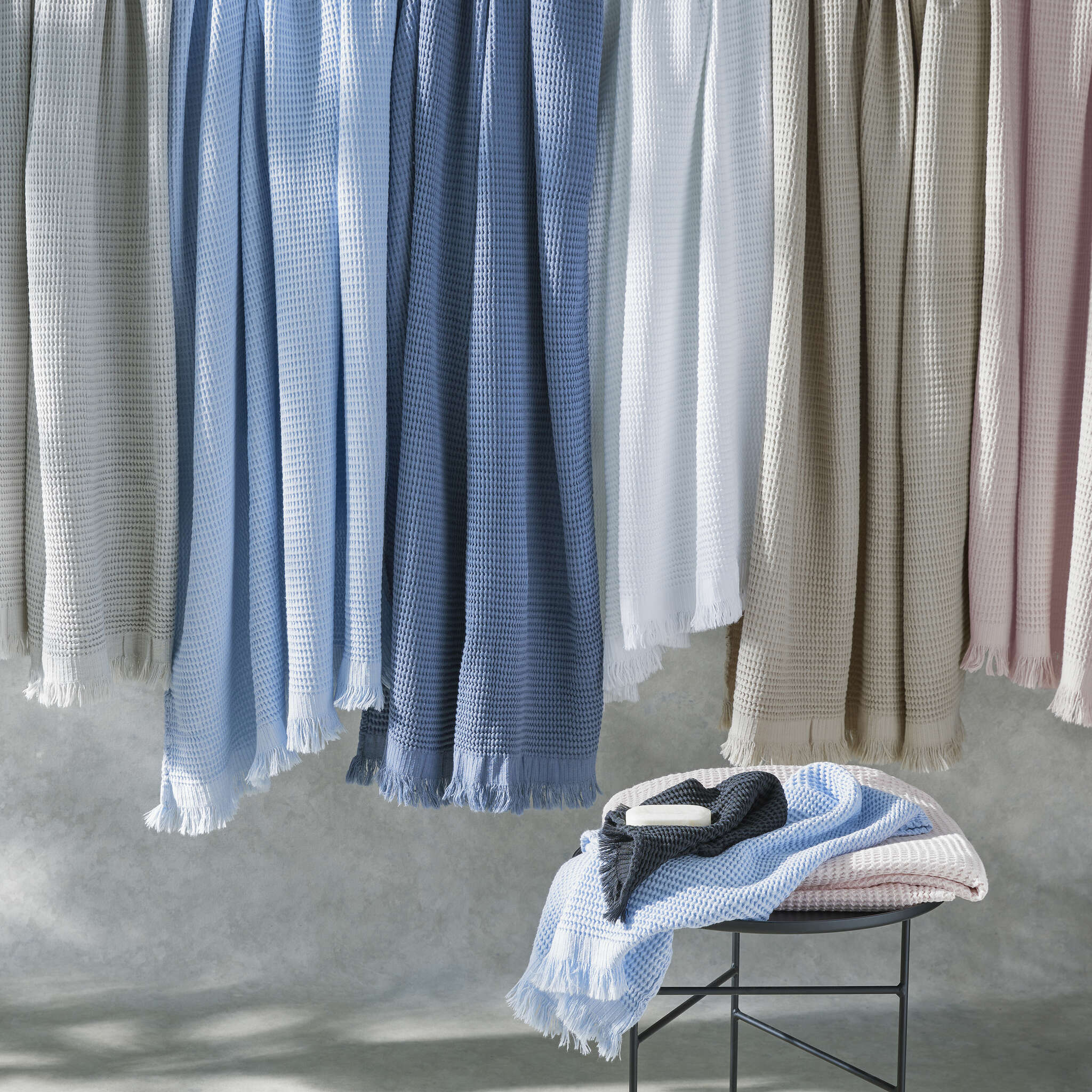 Kiran is a unique waffle towel with luxuriant suppleness and thirsty texture. Woven in Turkey, Kiran features a delicate barred border with fringe for a special finishing touch.