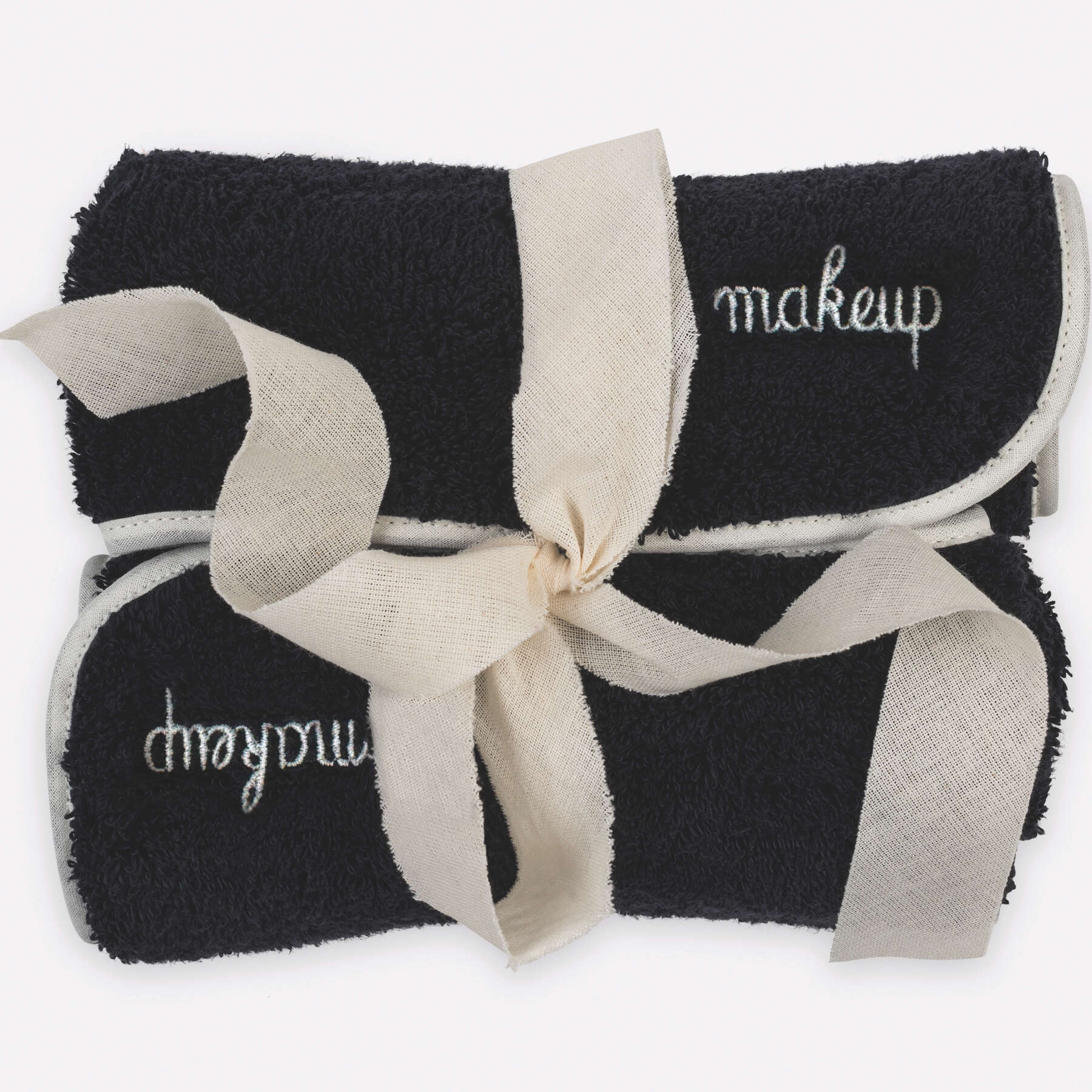 The Giza Makeup Towel is crafted from premium Giza cotton, known for its exceptional softness. Its vivid Carbon color is designed to resist fading from light, chemicals and frequent washing, retaining its rich hue over time. It's embroidered with "makeup" in a custom font.