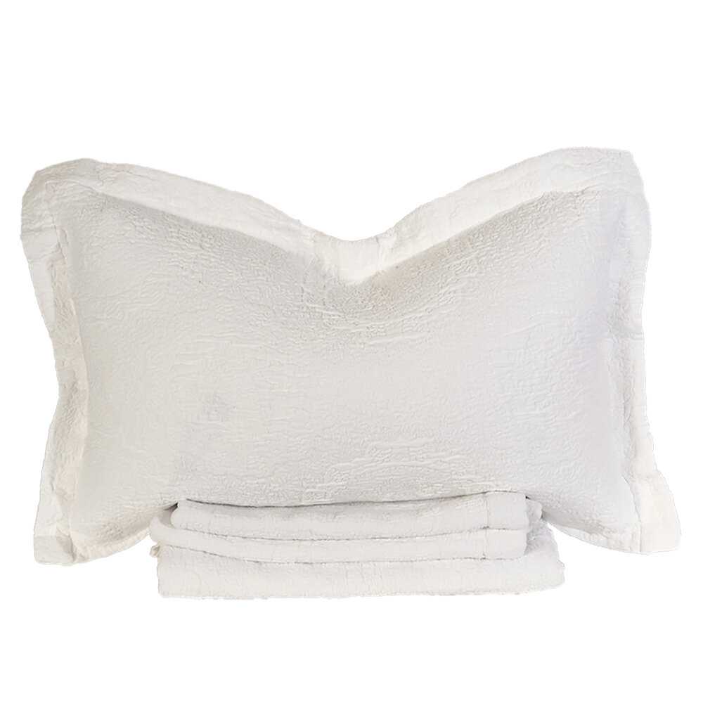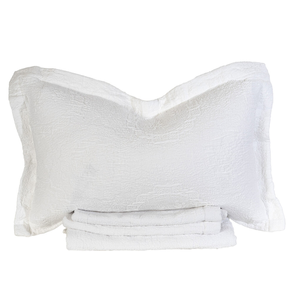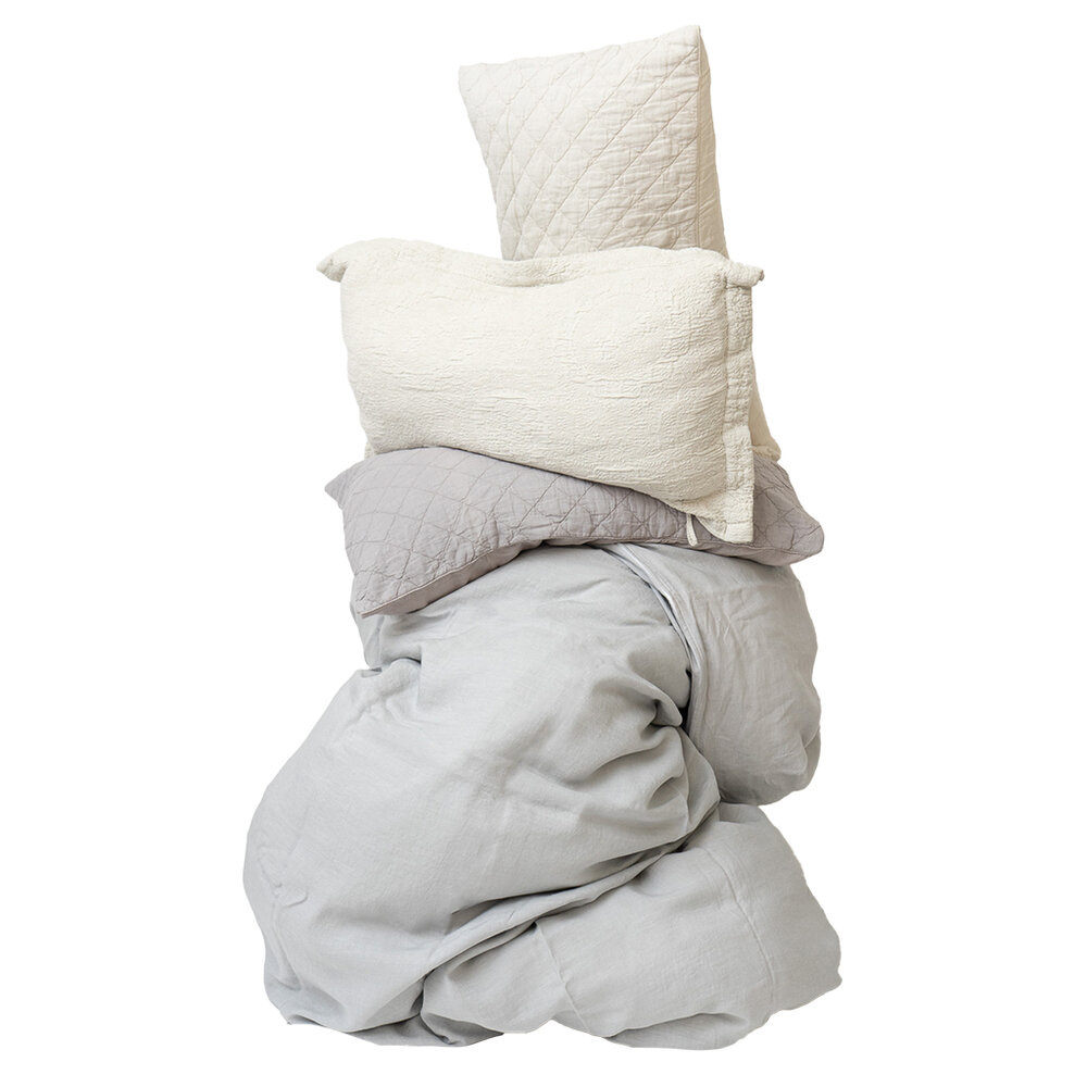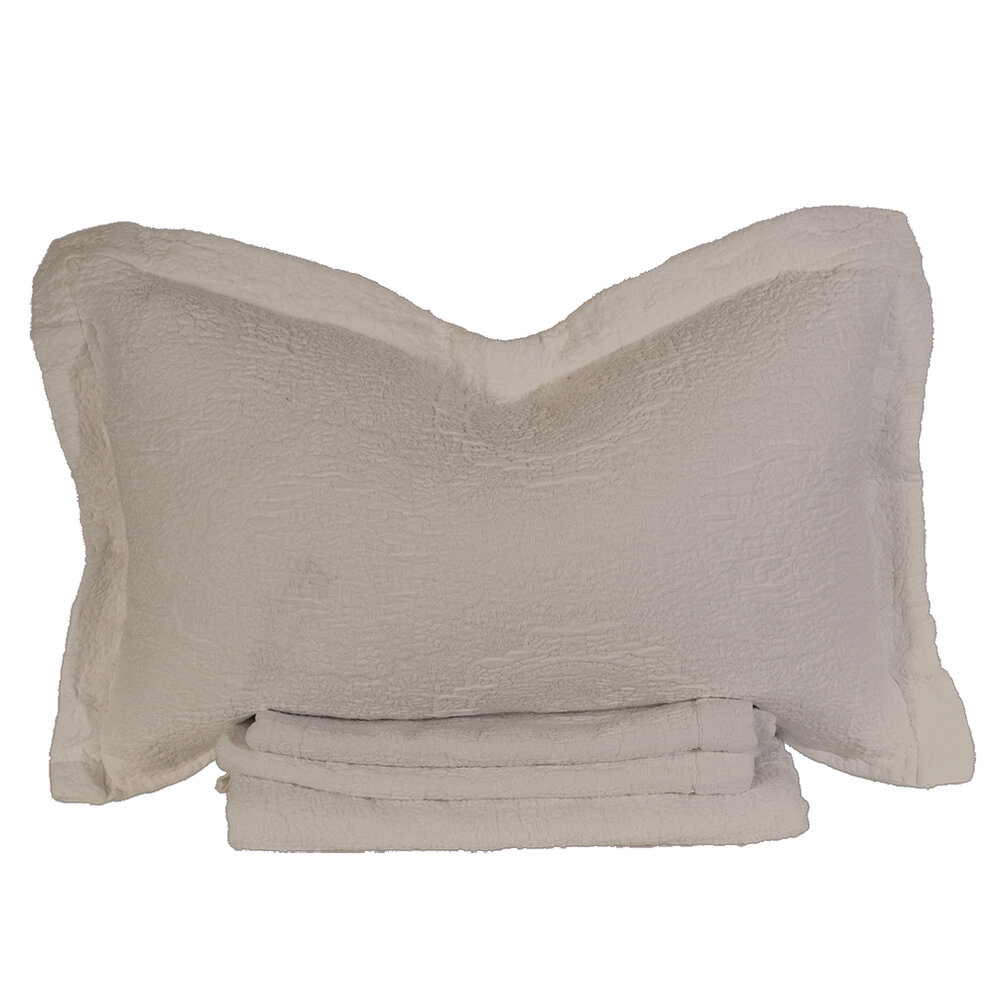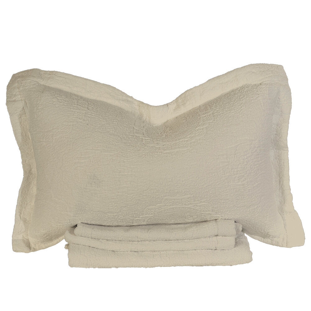 Matelasse is an incredible weaving technique invented by the French, using thick filling yarn to mimic an antique hand quilt. We worked with one of the finest Italian weavers in Northern Italy to create our newest Antik Matelasse. The greige or raw loomstate fabric comes to life and softens perfectly with our special garment washing technique. Made using both Cotton and Linen yarns, the different fibers reaction to the garment dye bath results in a beautifully subtle color variegation throughout the pattern.