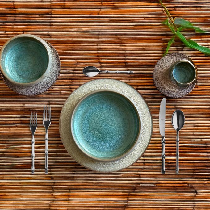 The texture and appearance of the handle not only add a touch of natural elegance and sophistication to the table but also offer a comfortable and secure grip. The bamboo-like pattern is detailed and realistic, helping to create a warm and welcoming atmosphere during meals. This cutlery is ideal for those seeking not only functionality and durability but also a unique and natural style. It is perfect for formal dinners, special events, or even everyday use, adding a touch of class and elegance to the table setting. With its combination of high-quality materials and nature-inspired design, this cutlery is an excellent choice for any occasion. Complete with a PVD Titanium Coating for added allure and tested reliability for over 3000 washes in commercial