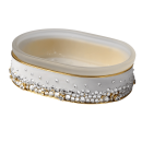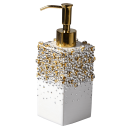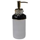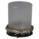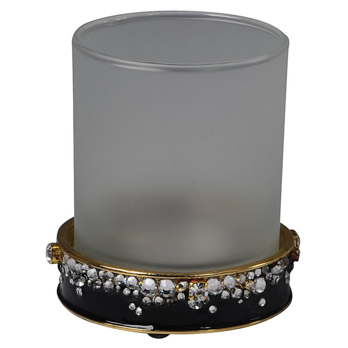 A signature collection of Mike + Ally workmanship. Cascading Austrian crystals on a jet ebony background w/gold accents creates drama in the bathroom sanctuary.