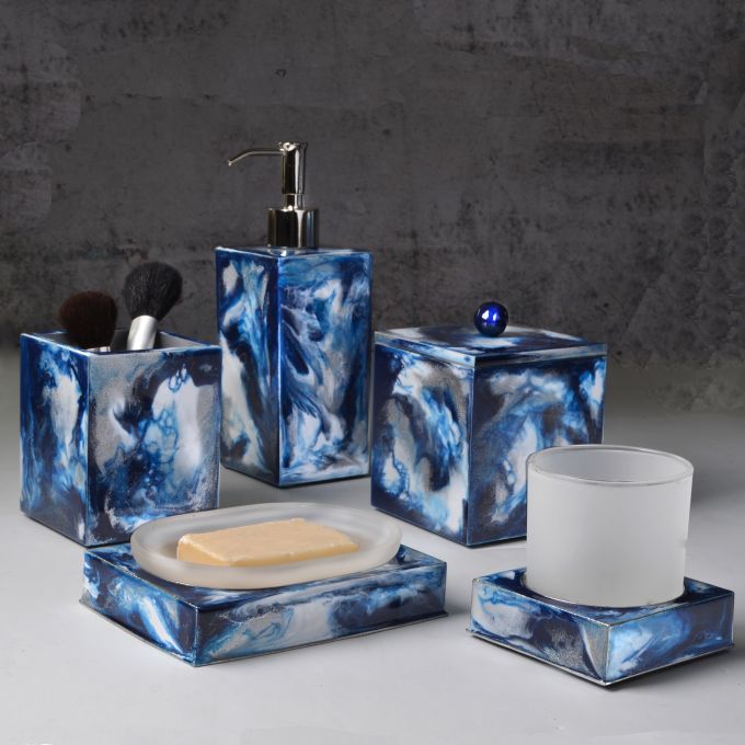 Mike + Ally artisans employ wet-on-wet watercolor techniques to produce soft and ethereal compositions, resulting in true works of art for the contemporary bathroom interior.
