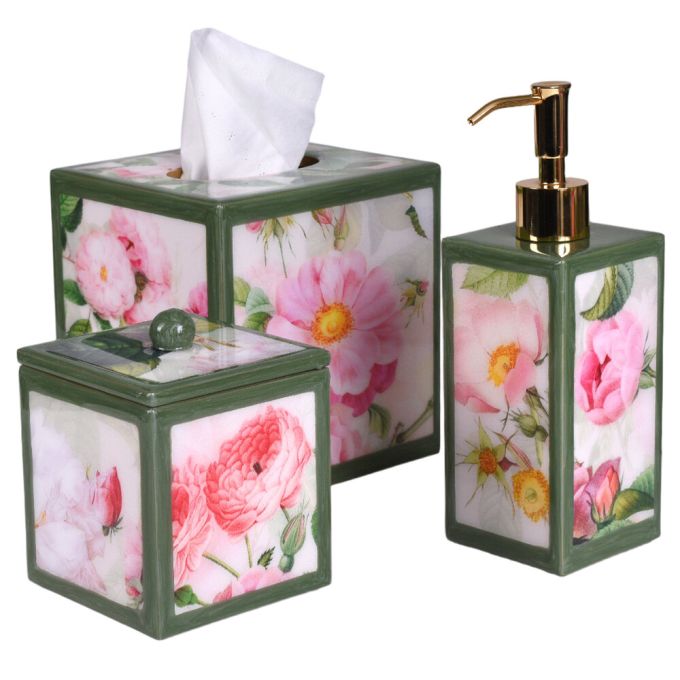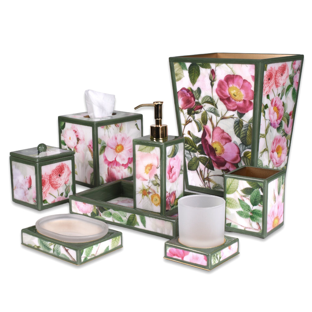 The Farmhouse Collection celebrates bold florals with a sense of warmth and nostalgia. Over scaled blossoms and rich colorways bring a modern vitality to classic country charm, transforming everyday bath essentials into expressive decorative statements.