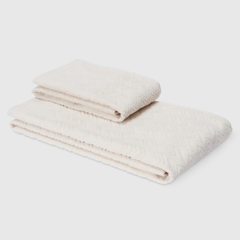 MissoniHome is dedicated to perfection in every detail, providing matching accessories to embellish every room in the house. Here is Chalk made of cotton terrycloth, featuring a refined zigzag pattern in an elegant tone-on-tone version.