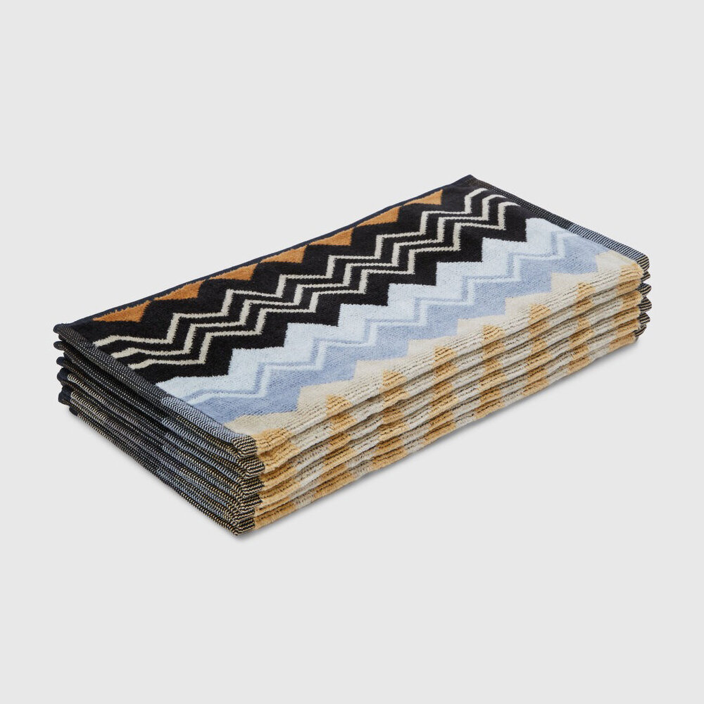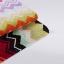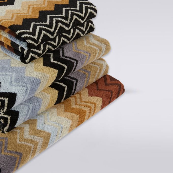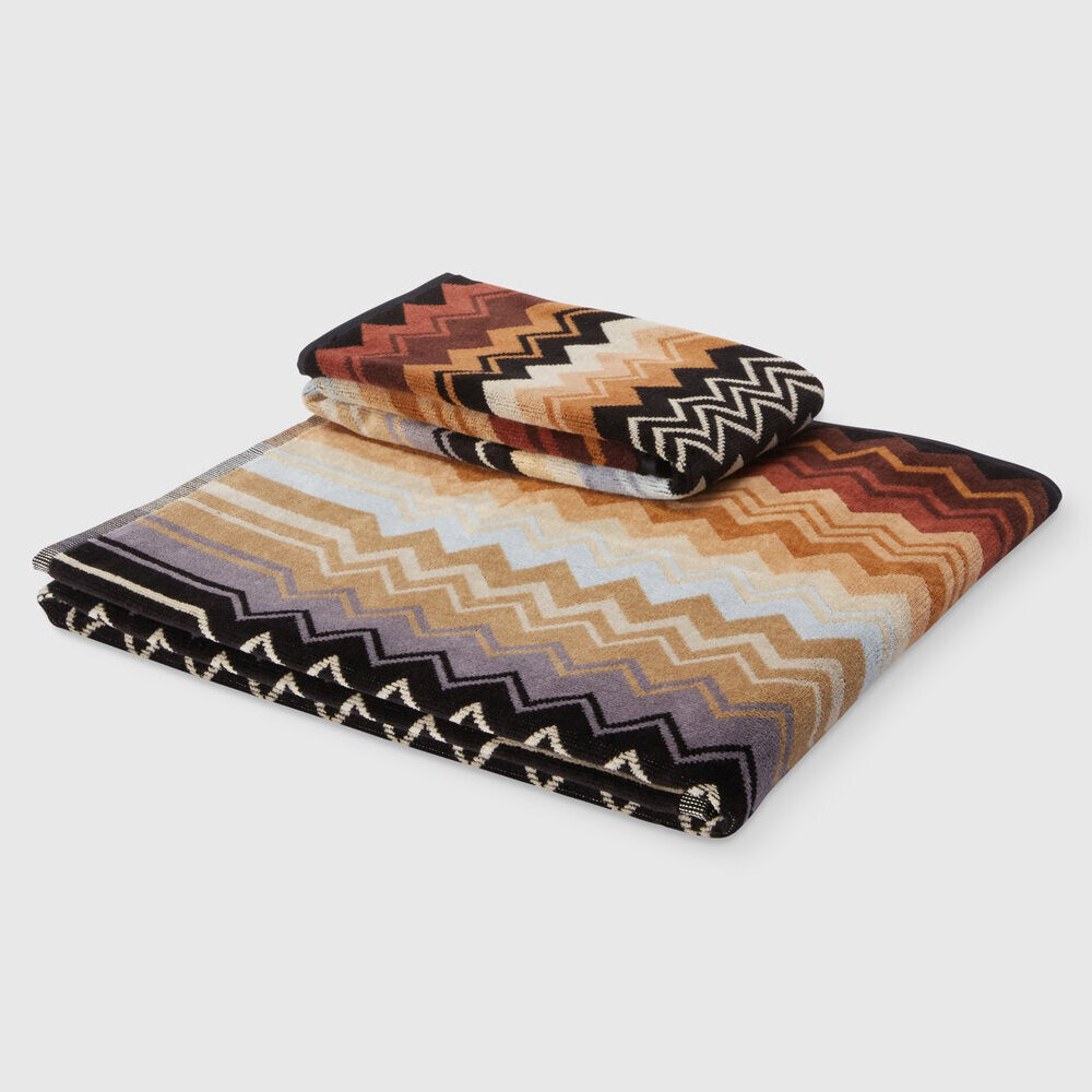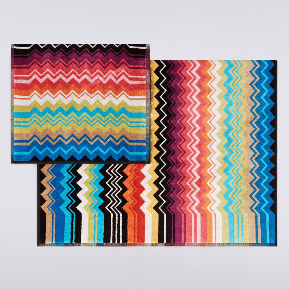The Giacomo is the quintessence of Missoni style: here the quality of the velour cotton terry meets the definition of the chevron print, which dips into the striped edges to enliven this beautiful and timeless linen accessory.