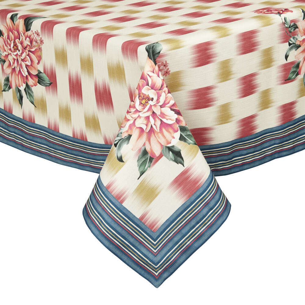 Named after the coral islands of Bermuda, this fun tablecloth marries the rich coral and turquoise colors of the reefs with bright florals. This chic tablecloth will elevate a tablescape for indoor or outdoor entertaining.