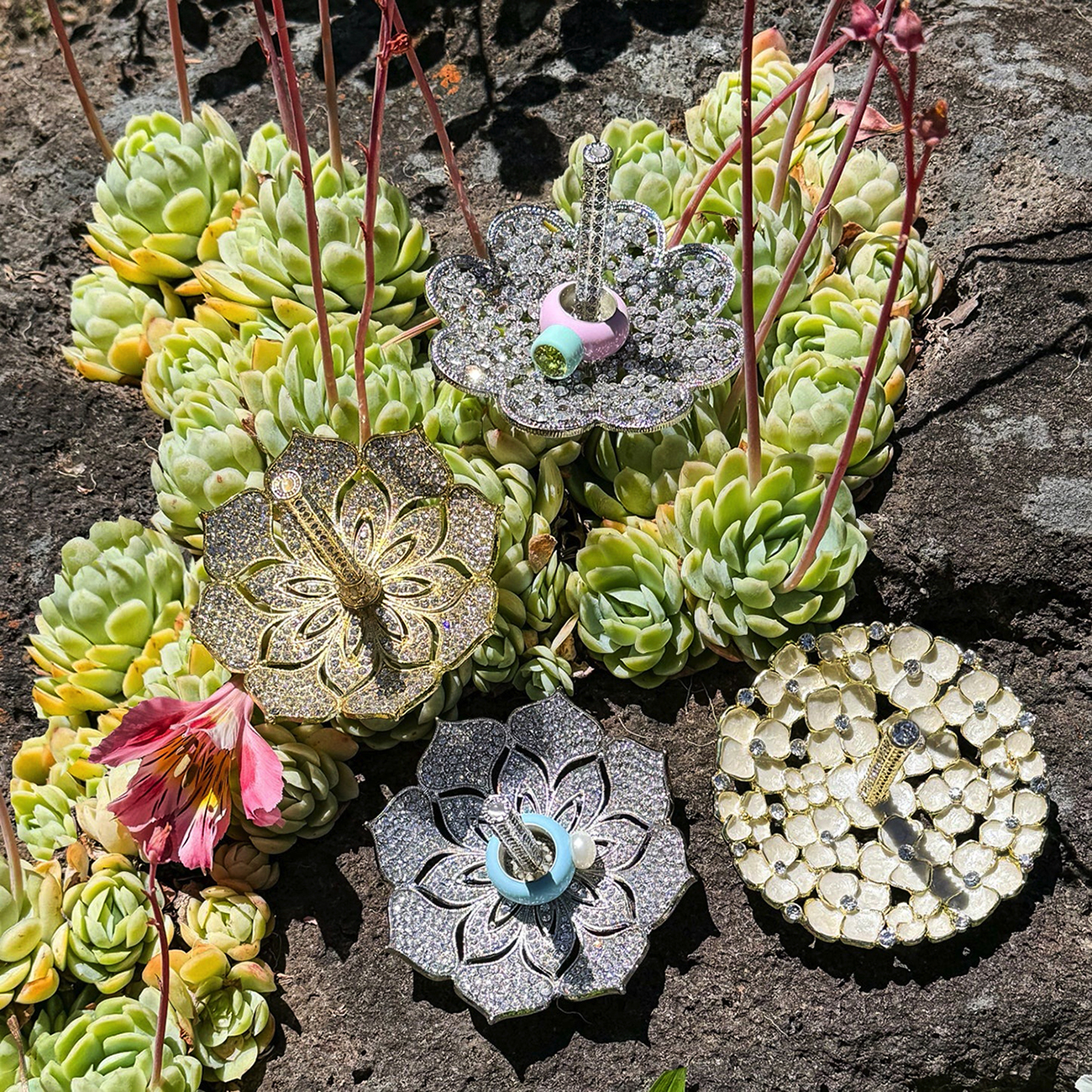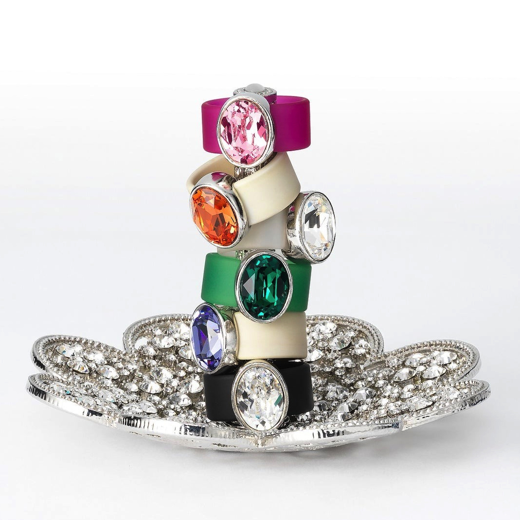 Each Olivia Riegel piece is artfully finished with hand-set crystals and where applicable, hand-enameling.