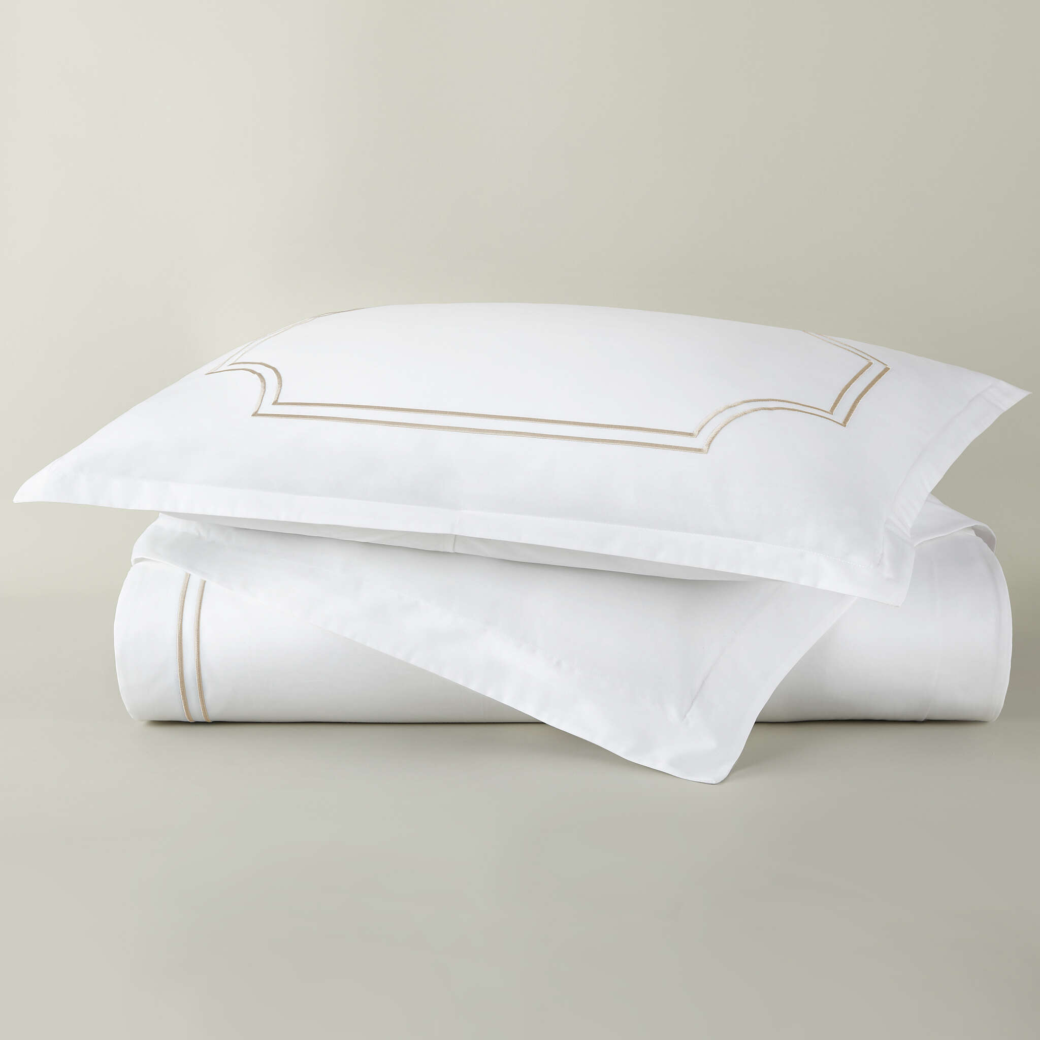Embroidery frames pillow shams on four sides, duvet cover on three sides.