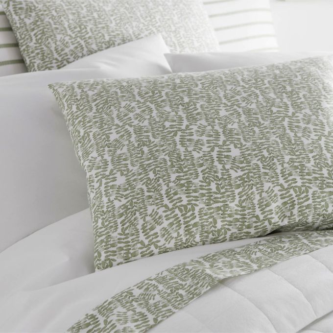 Fern is a free-flowing printed pattern that adds flare to your design scheme without any fuss. Its flat, fitted sheet, duvet cover and sleeping shams are inspired by nature and is meant to be mixed and matched with other products in the Fern collection. Fern is lightweight, breathable and naturally cool due to its percale weave.