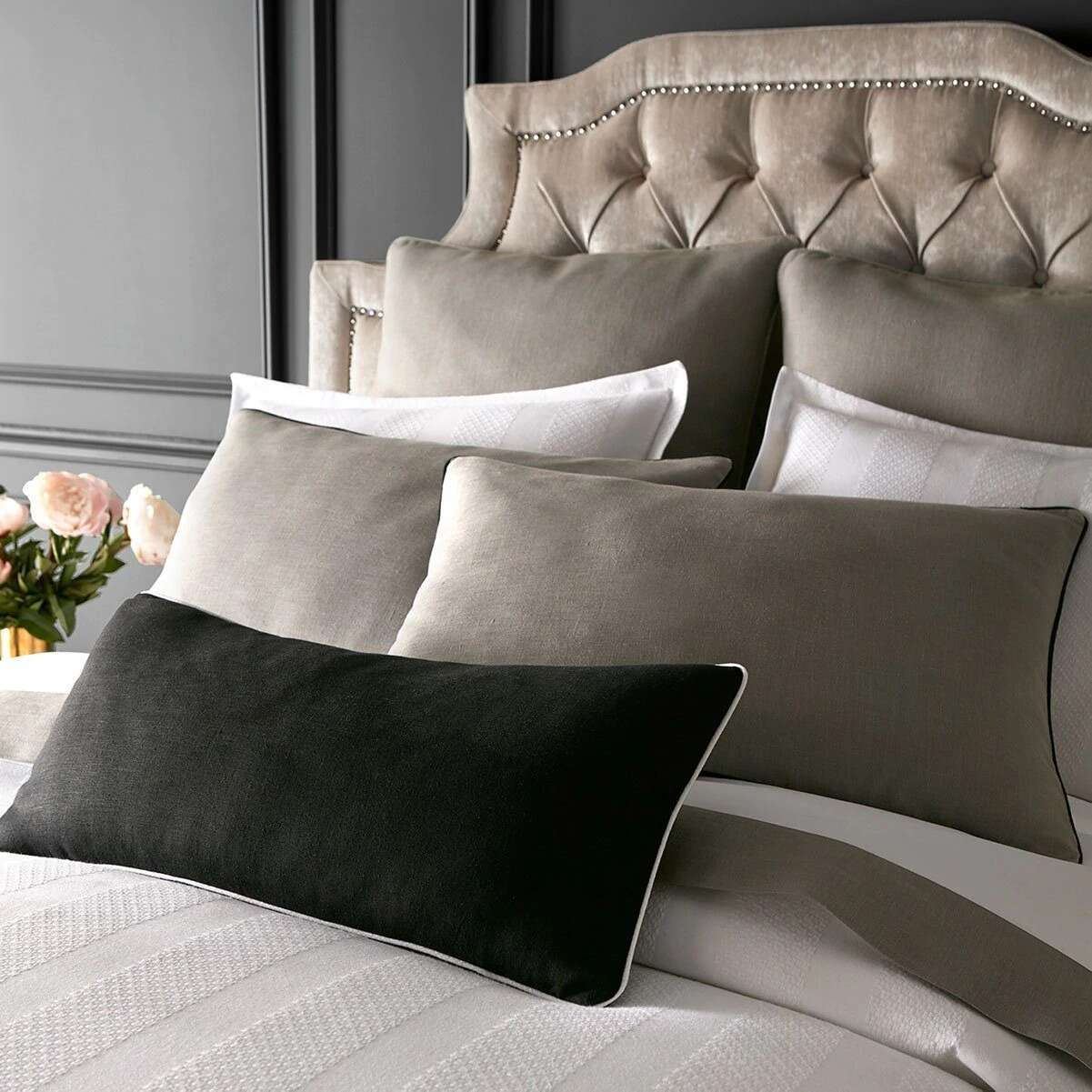 Duvet covers have a knife edge finish with cording detail on all 4 sides and an invisible zipper closure at the top. Reverse of the duvet is the same fabric.