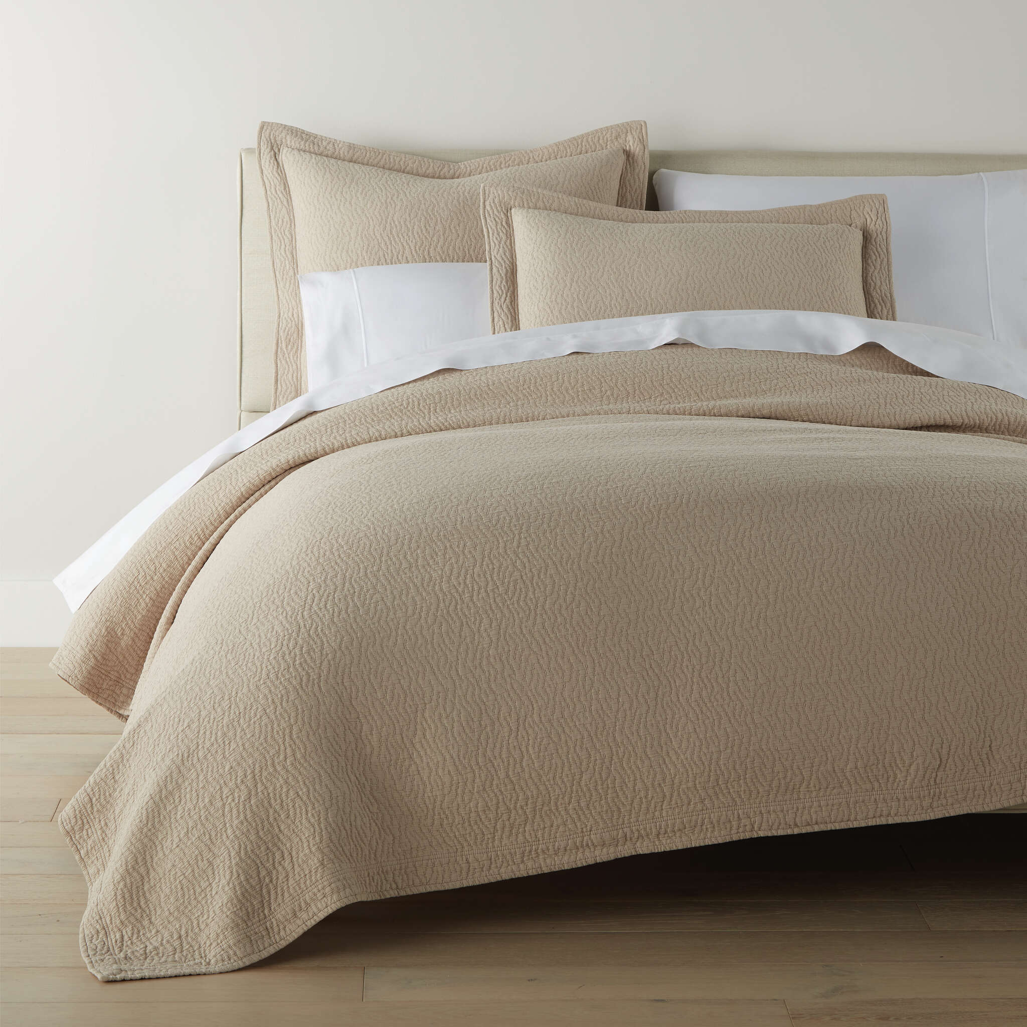 The Mia coverlet is exquisitely crafted in Portugal to bring a touch of European elegance to your bedroom. Immerse yourself in the sublime softness of stonewashed fabric, offering a cozy and inviting layer for a restful night's sleep. Choose from three versatile neutral colors, each exuding a timeless charm that effortlessly complements any decor style.