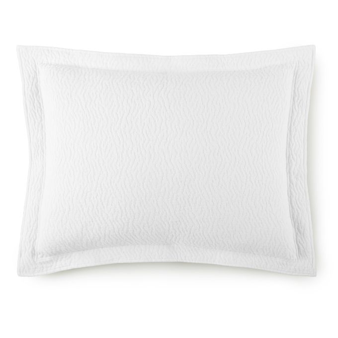 Shams have a 1.5" flange on all 4 sides with double needle stitch detail and a single needle at the edge. Shams are finished with an envelope closure, centered on the back.