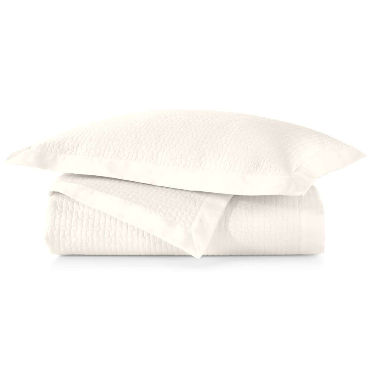 Shams are quilted in front with a 2” solid flange on 4 sides with an envelope closure centered on the back. The quilted front reverses to a solid sateen back.