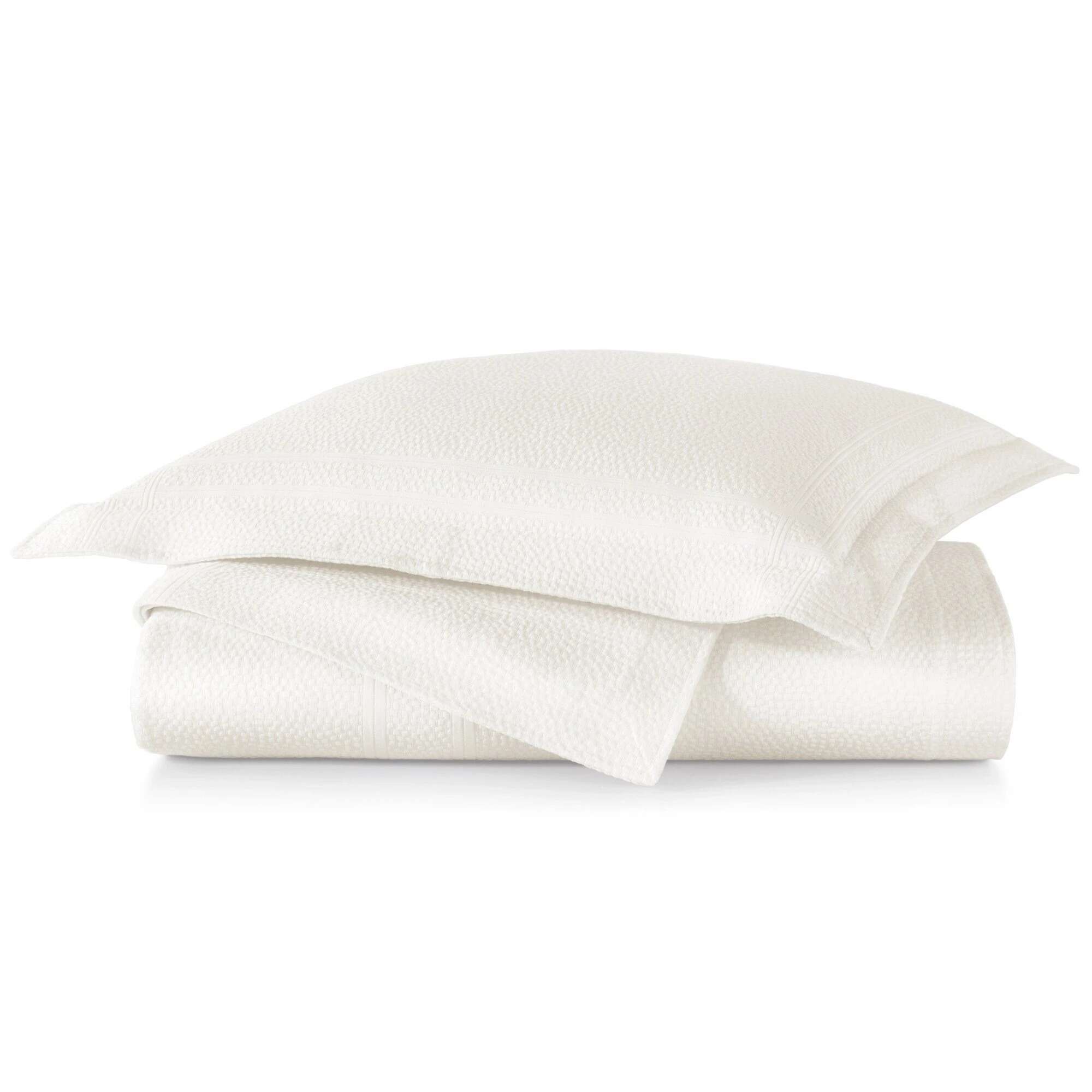 Duvets, coverlets and shams are made in Portugal. Bed skirts and decorative pillows are made to order in our Dallas workroom.