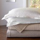 Duvet covers have a knife edge finish and invisible zipper closure at the top and ties in 4 corners. Reverse of the duvet is a 200 thread count white cotton percale.