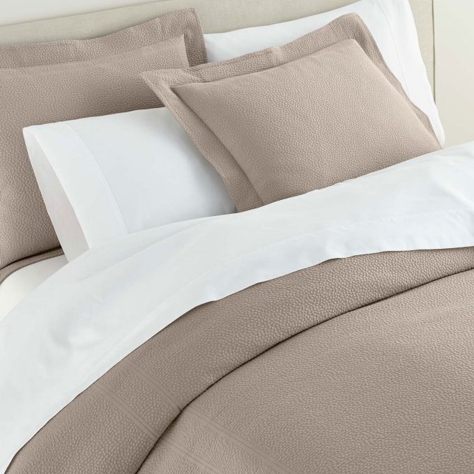 Coverlets have an engineered frame design with pebble texture. Coverlets have a 2.5” flange on 3 sides with a 1” hem on the top side.