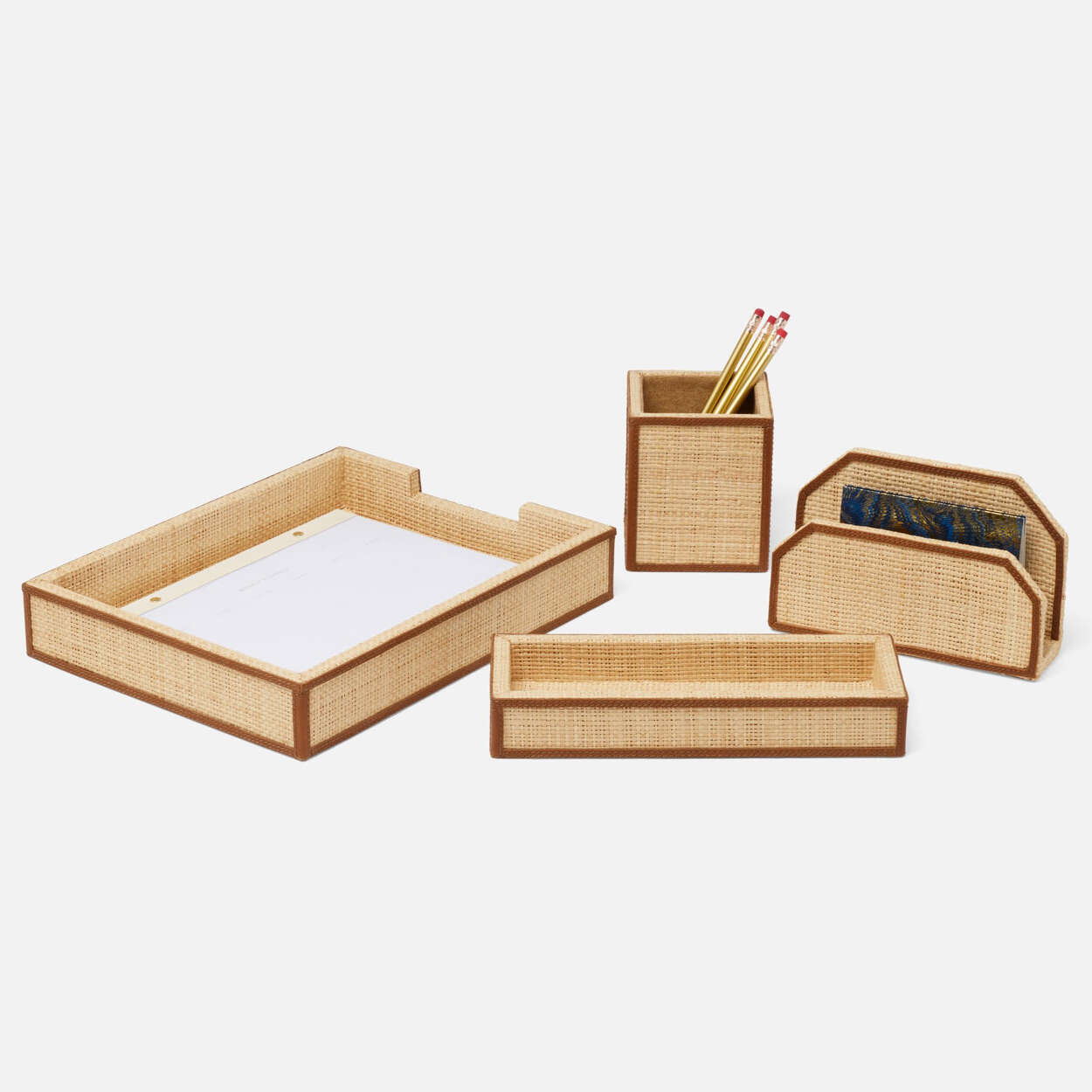 Letter Tray Set: Letter Tray; 13"L x 10"W x 2"H, Pencil Tray: 10"L x 3.5"W x 1.5"H, Pencil Holder: 4"L x 4"W x 4.5"H, Envelope Holder: 7.5"L x 2"W x 5"H.