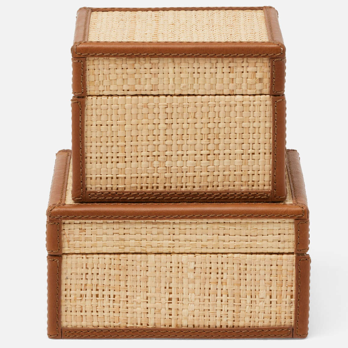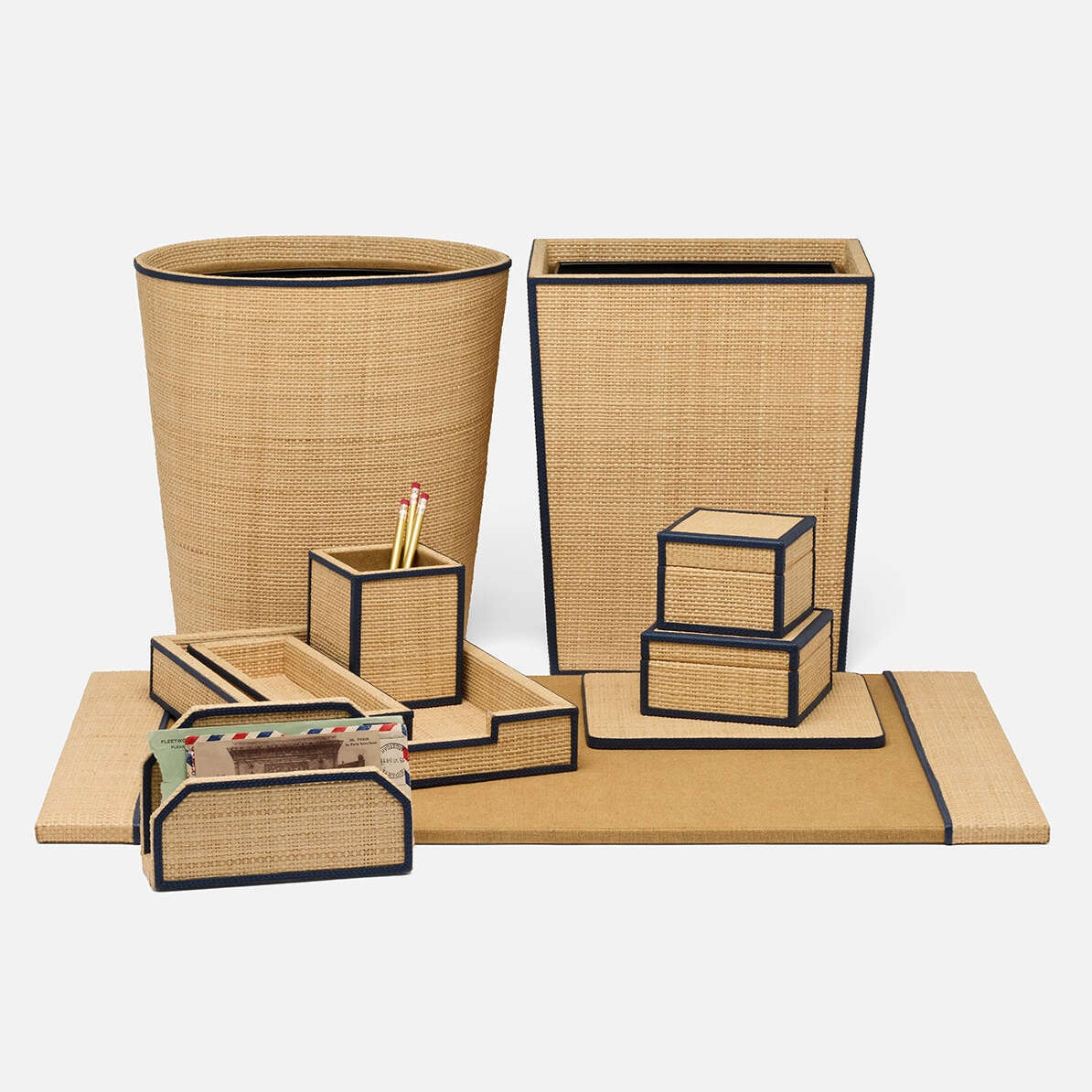 Enjoy a classic style with our Hanford desk collection made from raffia and leather.