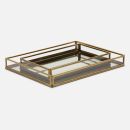 A marriage of antiqued mirror and clear glass with metal trim, these trays elevate any surface.