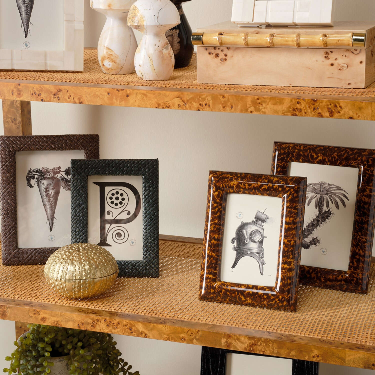 Display photos glamorously with Dana. Crafted from high gloss faux tortoise, this artful frame intrigues with unique patterns and texture.