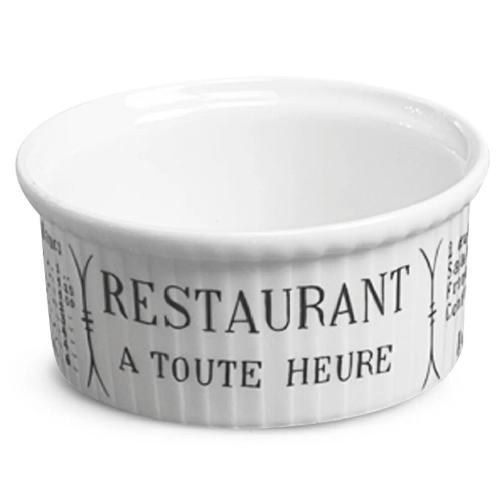 Collection Brasserie transports you to the cafes of Paris where time seems to stand still as you watch the world go by. Made from the finest French porcelain and decorated with vintage French menus, Pillivuyt's Brasserie Ramekins are the perfect addition to your dishware collection. Oven, freezer, dishwasher and microwave safe.