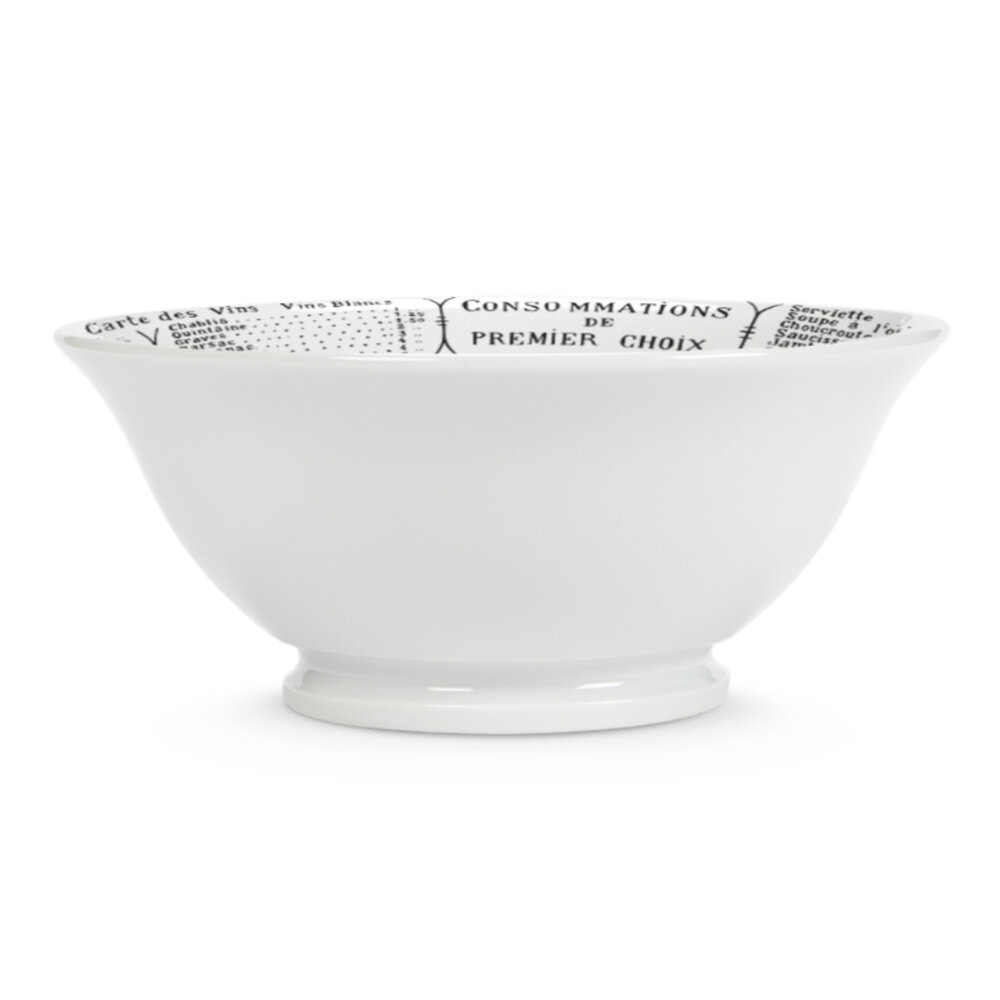 Collection Brasserie transports you to the cafes of Paris where time seems to stand still as you watch the world go by. Made from the finest French porcelain and decorated with vintage French menus, Pillivuyt's Brasserie Footed Bowls are the perfect addition to your dishware collection. A classic shape from Pillivuyt that is distinctly French with its elegant footed base and gently fluted rim.