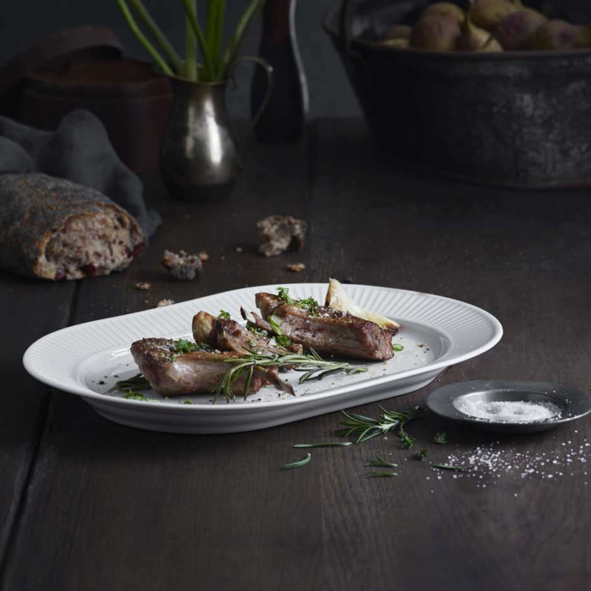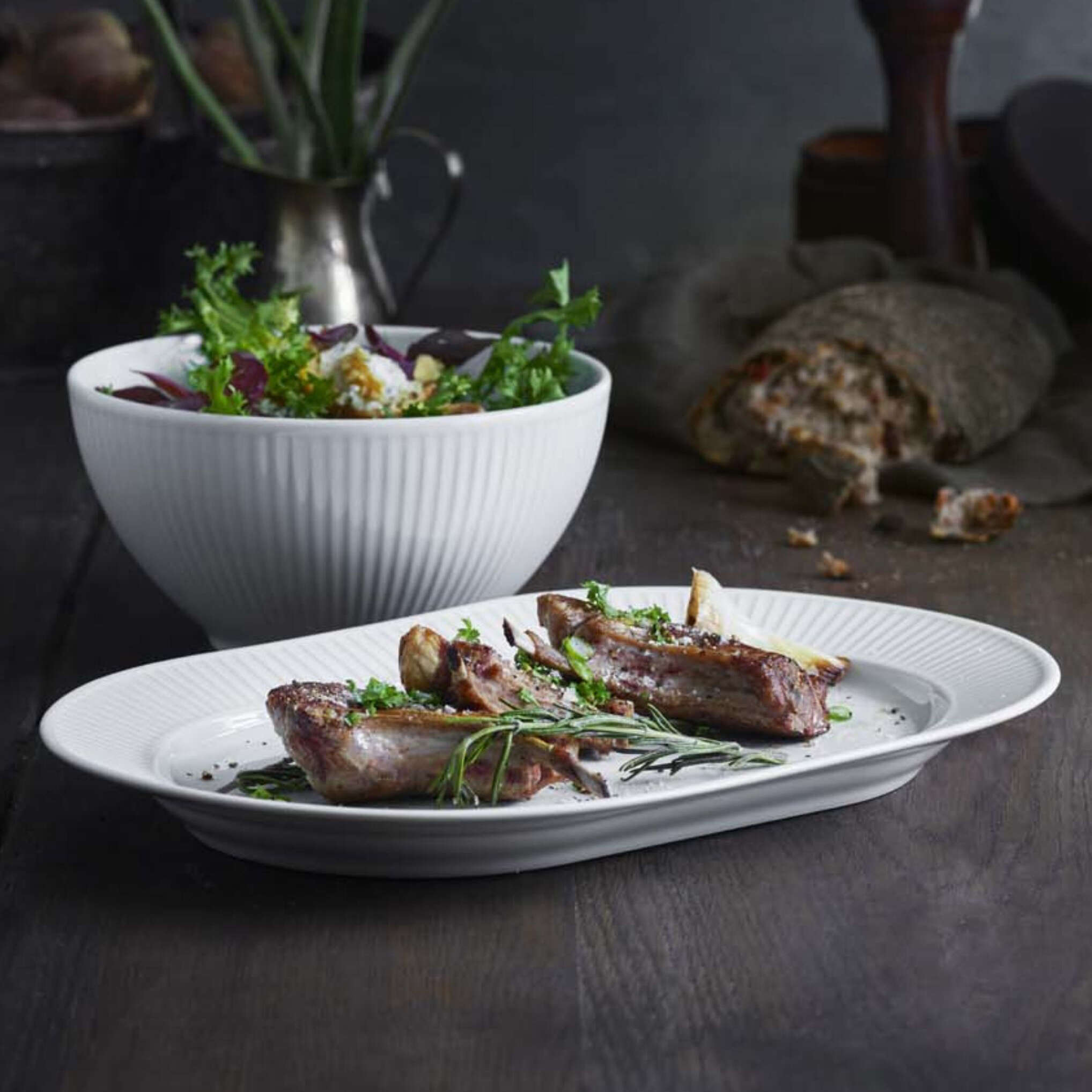 Plisse is a classic design from the mid-20th century that has been refined with pleats that are more delicate and elegant, giving this revisited classic collection a place on both casual and formal tables. The Plisse Oblong Platter is the perfect serving piece to set your table with style.