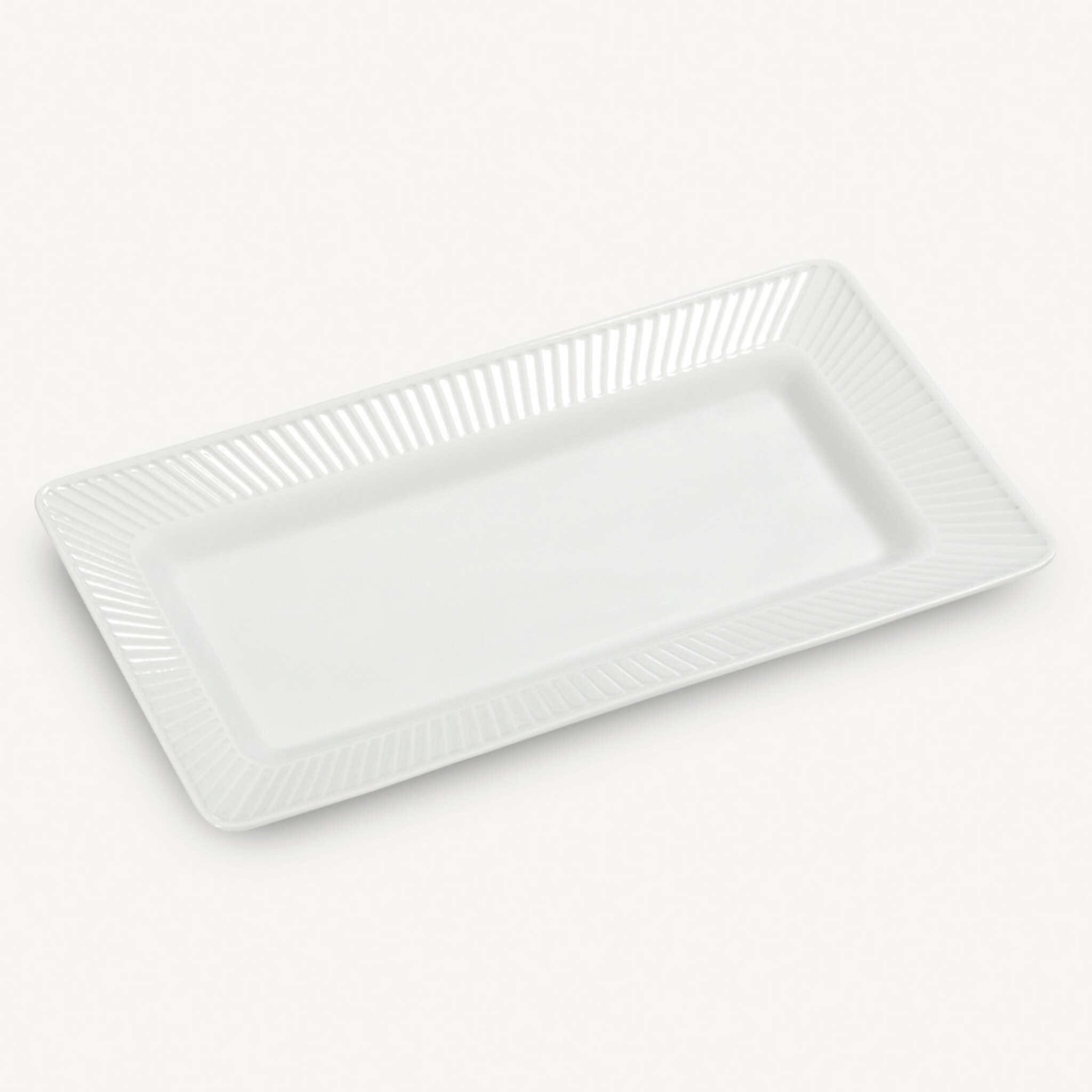 Plisse is a classic design from the mid-20th century that has been refined with pleats that are more delicate and elegant, giving this revisited classic collection a place on both casual and formal tables. The Plisse Rectangular Platter is the perfect serving piece to set your table with style. Pair this with our Plisse Square Dishes to create serve dips, nuts, or olives.