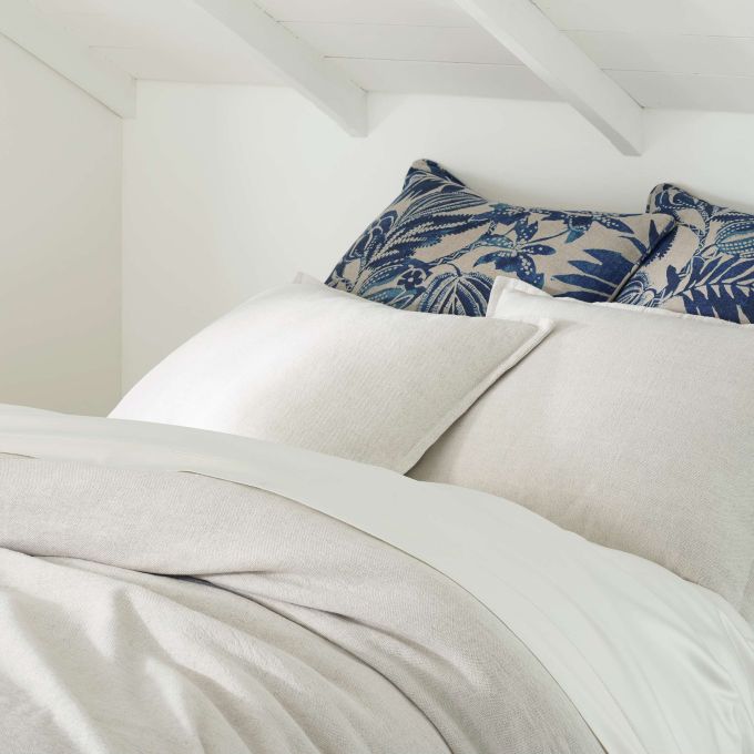 Make everyday a little more luxe with our always-in-season Wilton bed linens. Classic chambray weave is rendered in simple natural fibers and softly laundered for unparalleled comfort and softness. This new capsule collection has been updated for a cleaner more tailored look.