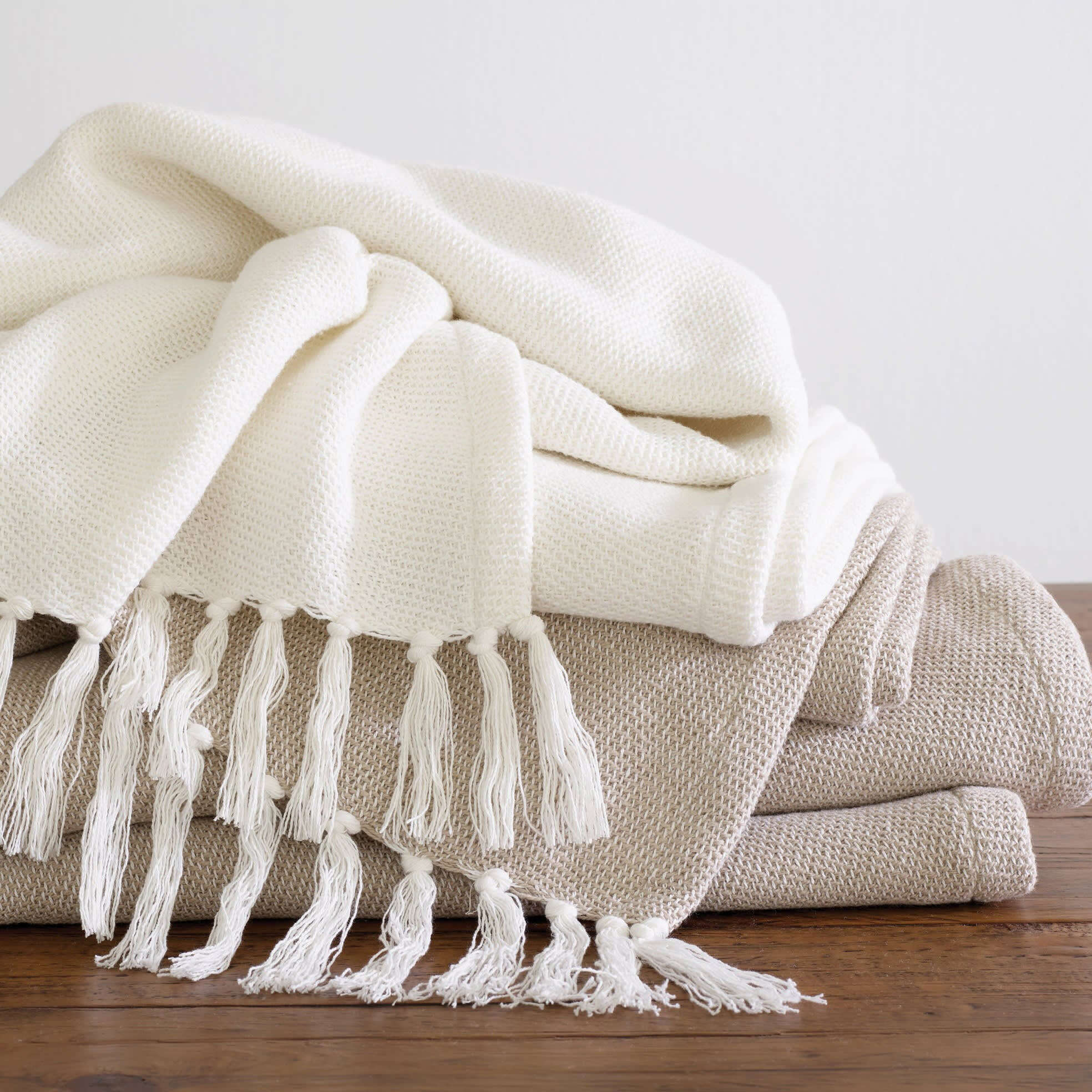 A soft and snuggly addition to the perfectly layered bed, arm chair or sofa, our pure cotton Logan Throw has a float stitch weave for extra insulating qualities. With a knotted self fringe along the width edges, it can make a bold and sophisticated bohemian texture statement.