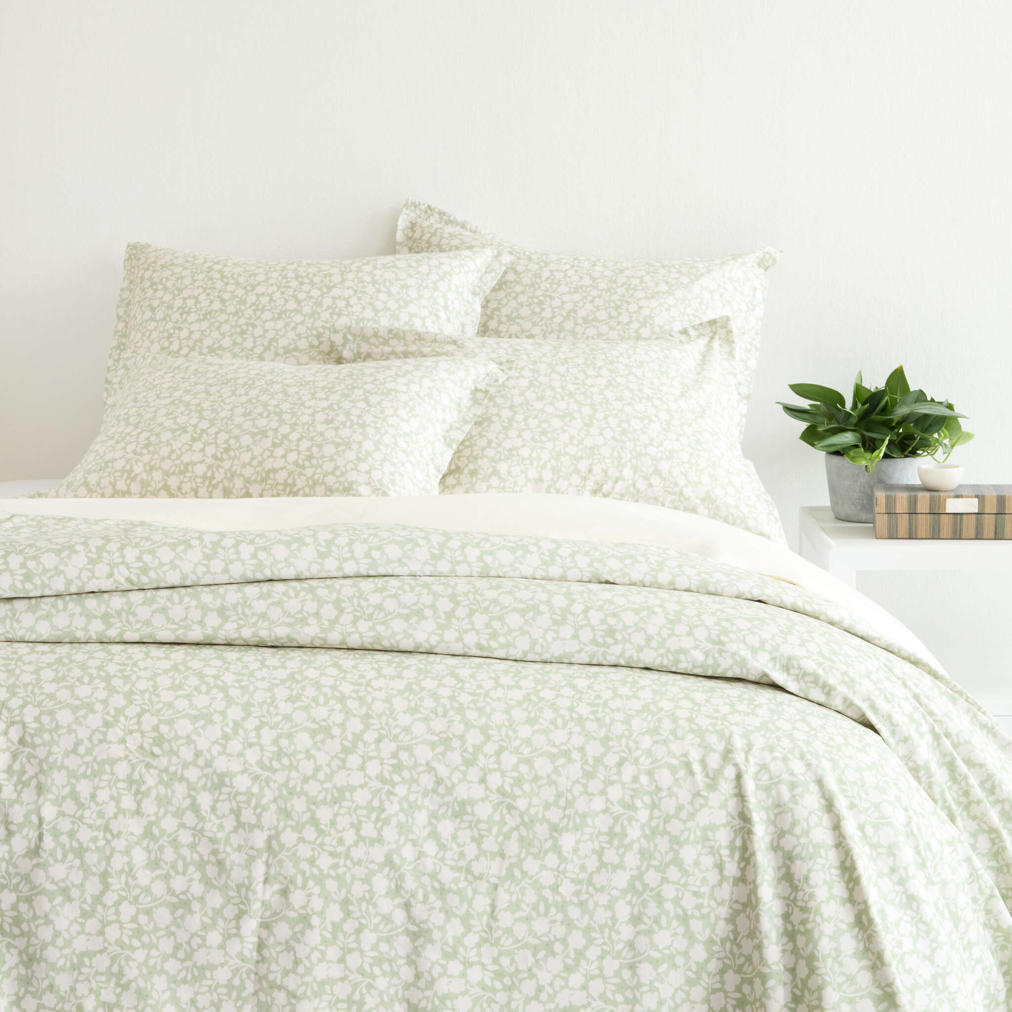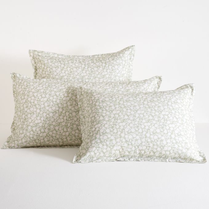 Our Aria Sage Duvet Cover is crafted from 100% crisp, cotton percale that’s perfect for all sleepers and layers effortlessly. With a soft sage-green background and a delicate, ivory floral motif, it adds a fresh, inviting touch to your bed. Ideal for any time of year, it’s a charming choice for any bedroom.