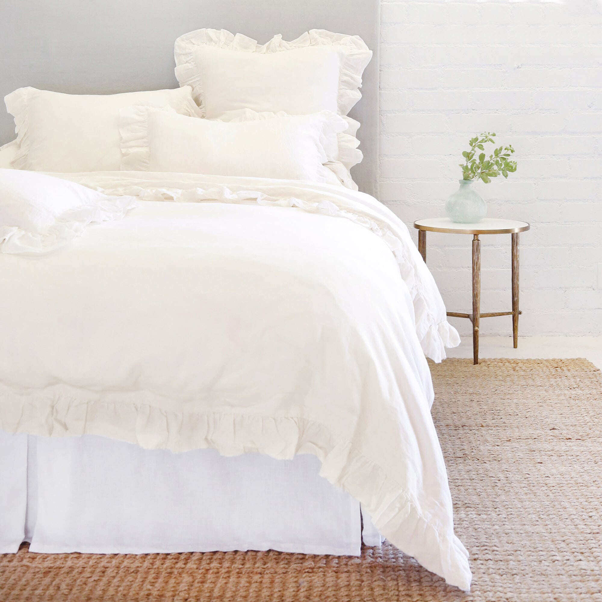 Simplicity at its finest. The Charlie Bedding Collection features a charming 4" ruffle that surrounds both the duvet cover and shams, making this collection a staple in any home.Shell-button closures on duvet and shams.