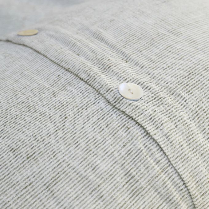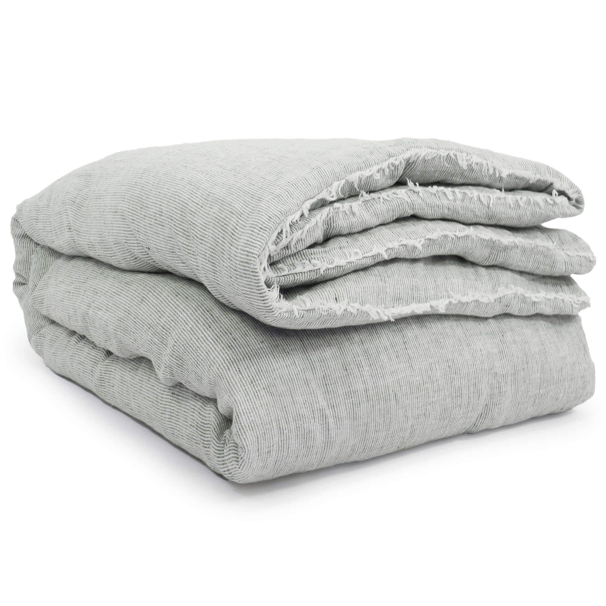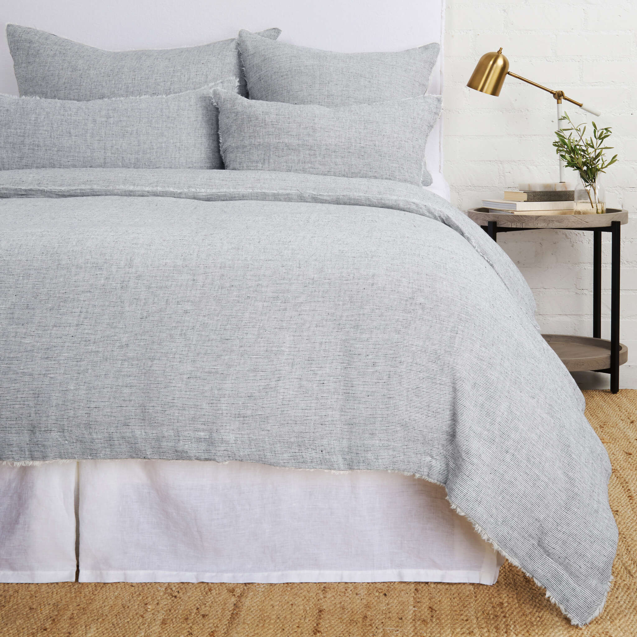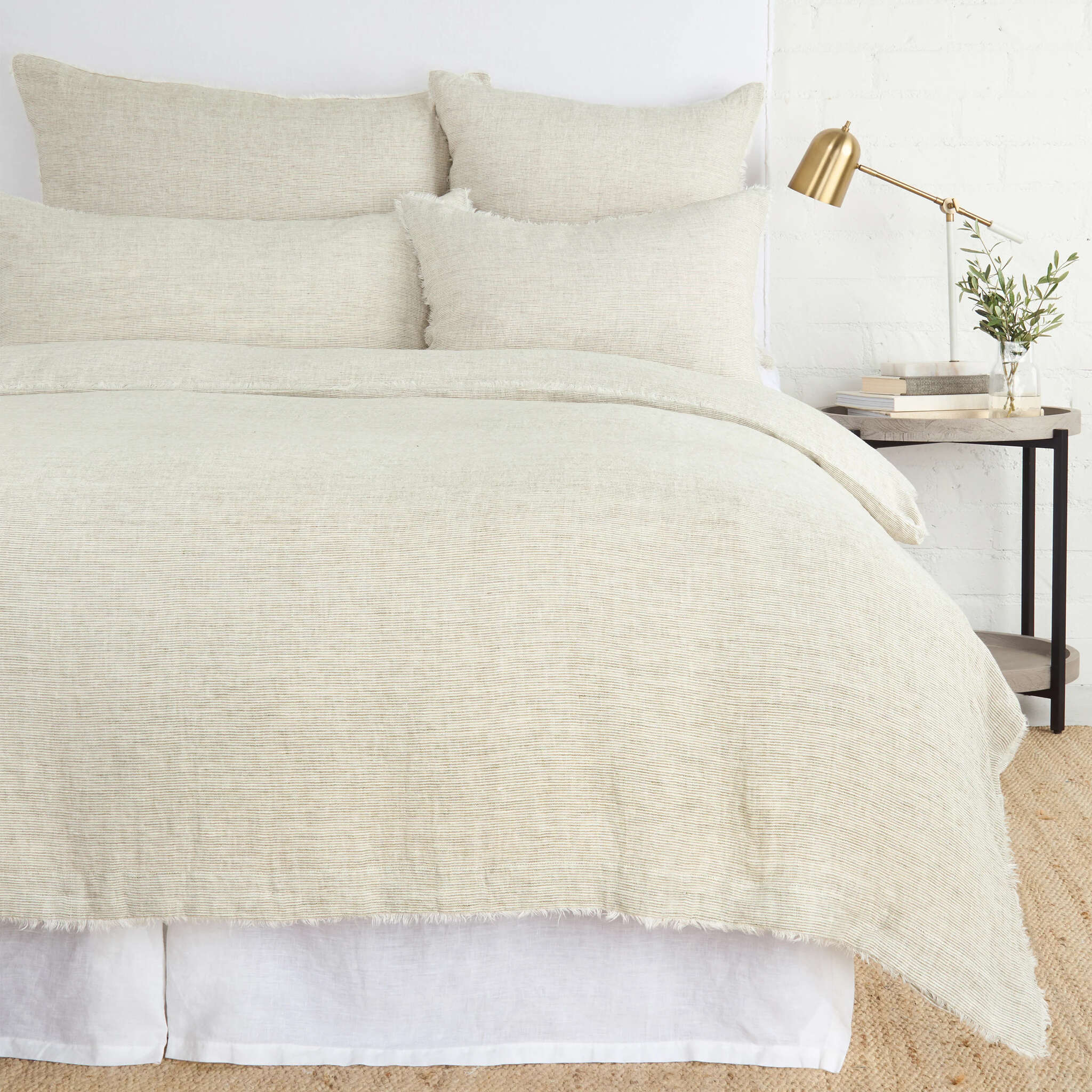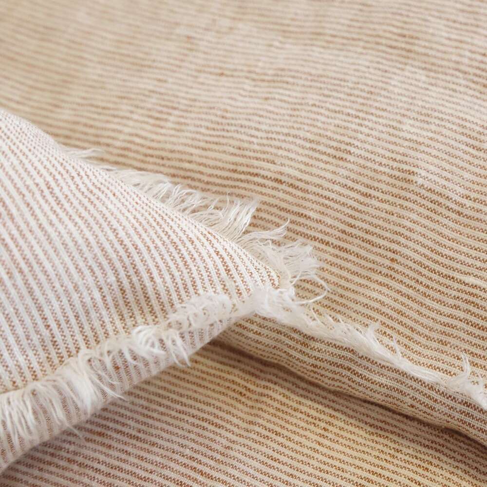 Subtle frayed edges of soft linen add a dash of unexpected detail to this Logan Collection. Woven with two different colored yarns for a heathered effect.