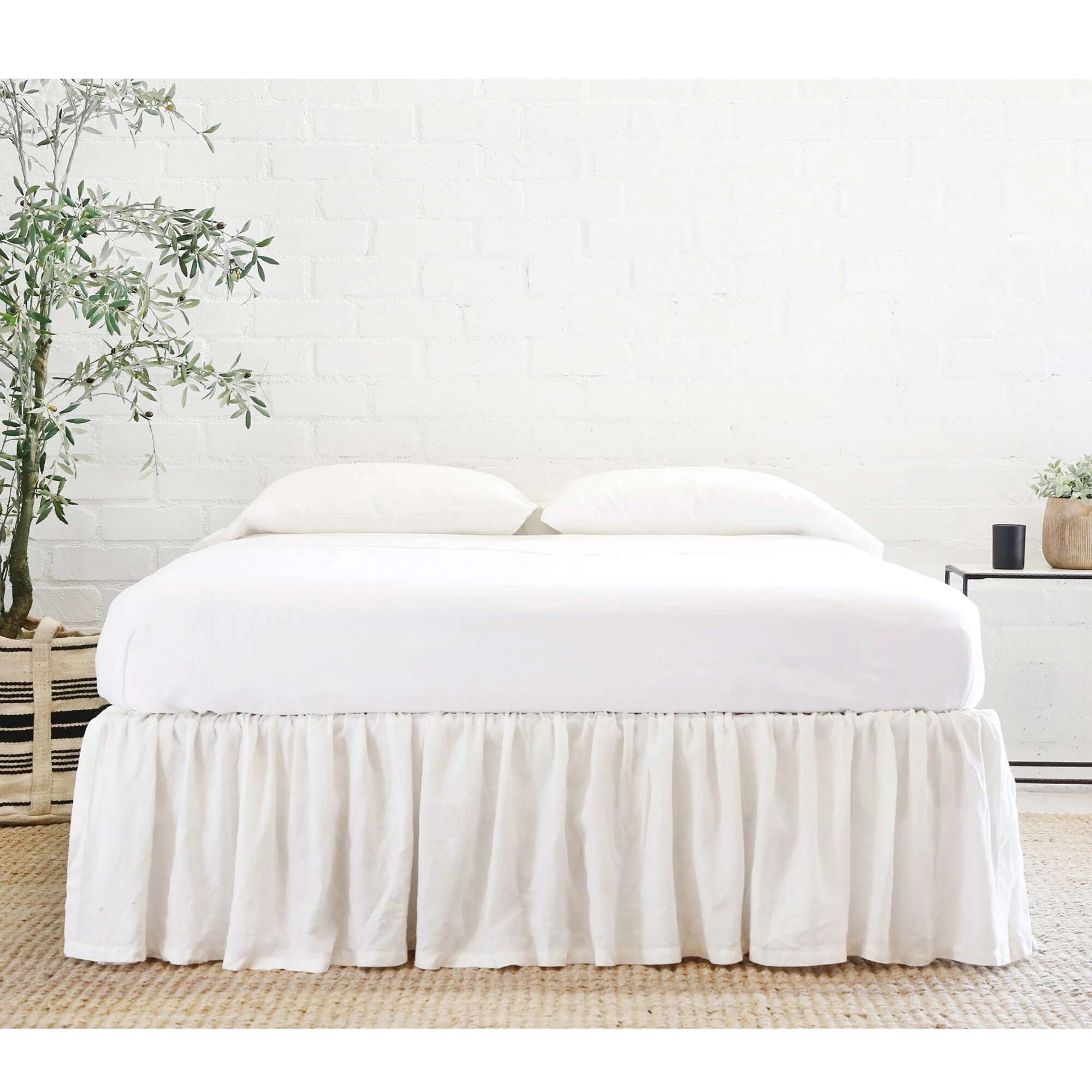 Finish your bed with our classic Gathered Linen Bedskirt. Light & airy, the elegant fabric billows below your bed like a cloud.