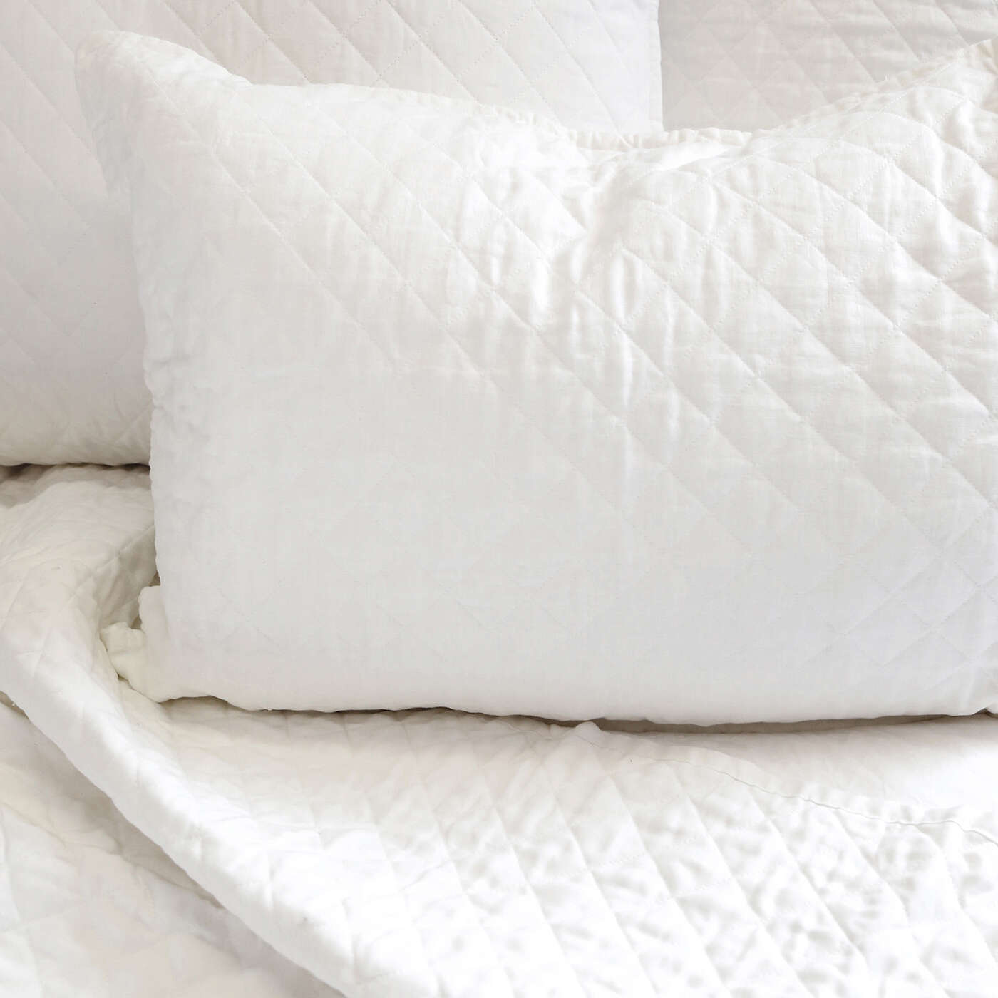 A timeless classic, the Hampton is a luxurious diamond quilted coverlet made of washed linen. It is finished with a 1/2" flange and straight corners.