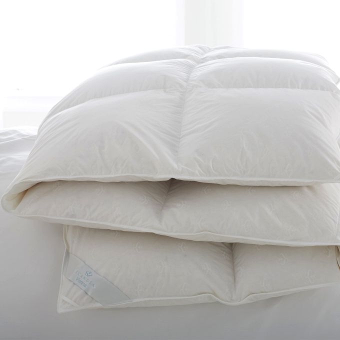 Dress the bed in everyday luxury. Imported from one of Germany’s finest textile mills, cotton batiste fabric completes the Vienna comforter in lightweight, touchable softness. A decadently dense and light filling of 750+-fill-power Polish white goose down delivers superior warmth and cloud-like loft, while artisan craftsmanship reflects our commitment to old-world quality and tradition. This beautiful comforter features our Scandia Crest pattern and is offered in three weights for custom comfort.