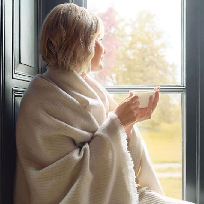 A warming combination of wool and cashmere that wraps itself around your shoulders like a loving embrace when the autumn fog lifts early in the morning and the day awakens. The Elias plaid in beige and gris is a favorite companion for moments of calm and serenity in every aspect.