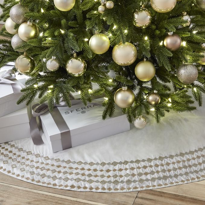 Intricate beadwork and metallic embroidery express Lucido's festive diamond pattern, which leaves room on the solid cuff for personalization with a monogram.