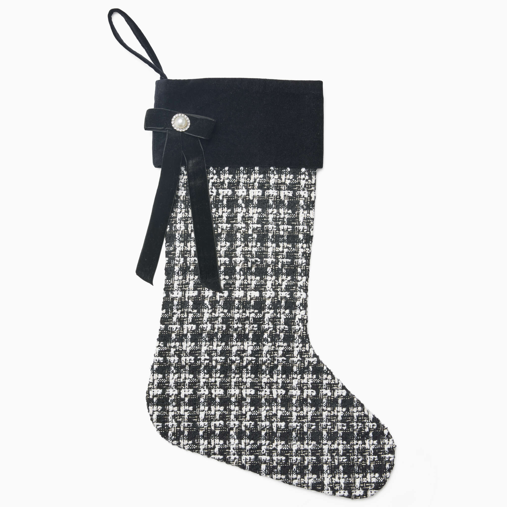 SFERRA’s holiday stockings are designed to conjure the spirit of holidays gone by—full of wonder, warmth, and quiet tradition. With every detail, they evoke the nostalgia of wintry mornings, the glow of tree lights, and the anticipation of gifts to come. Each stocking is crafted to become a lasting piece of seasonal storytelling—hung with care and cherished year after year. Jingle is crafted from a yarn-dyed boucle body and finished with a solid velvet cuff, combining cozy texture with a refined contrast. It’s a festive classic that feels both playful and polished.