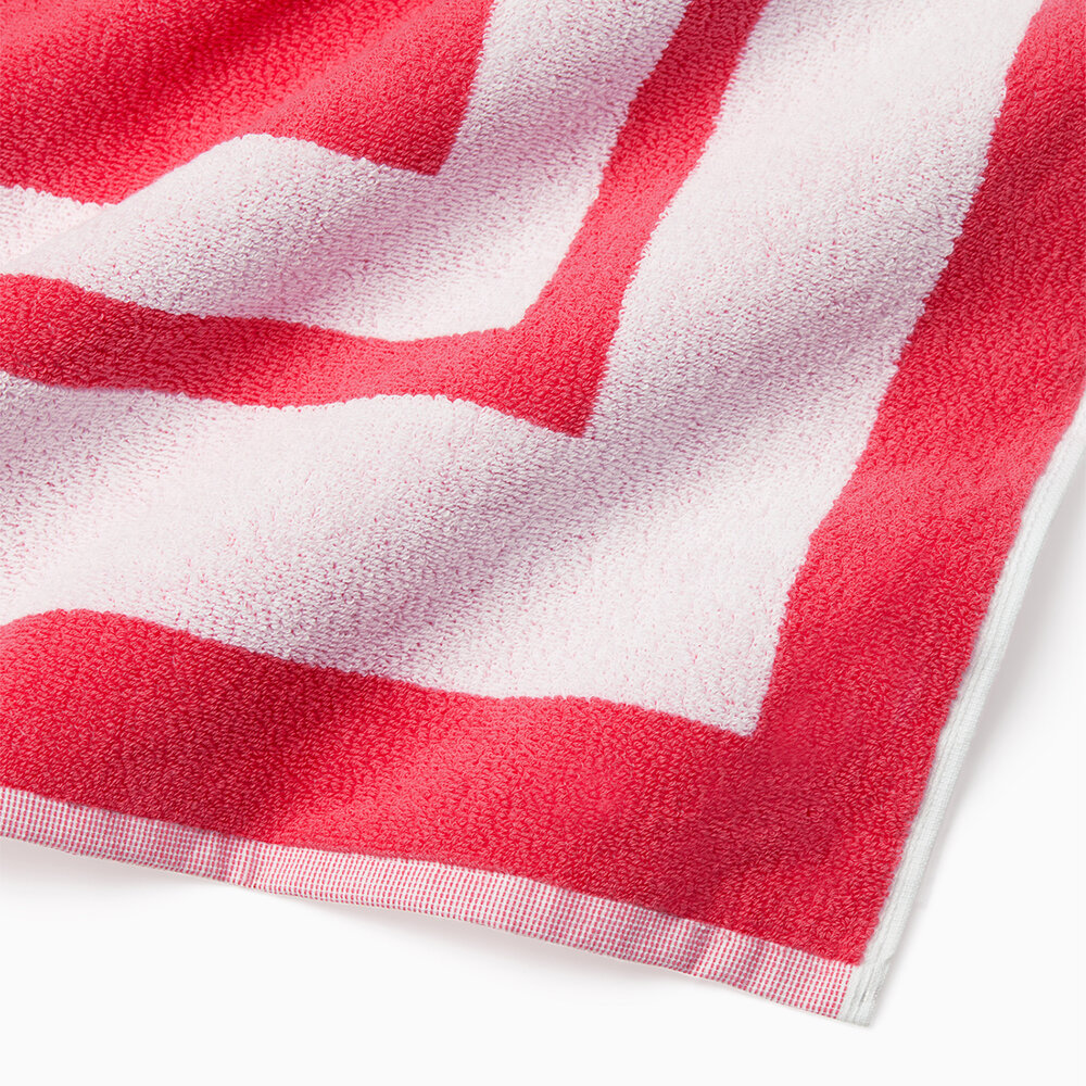 With its vivid, graphic color pairings, one bold hue bordered by another, Mareta recalls the décor of Hawaiian cabana clubs from days past. And it’s meant to. A plush way to spend the day under the island sun, it’s also a chic accessory worthy of the most exclusive resorts.
