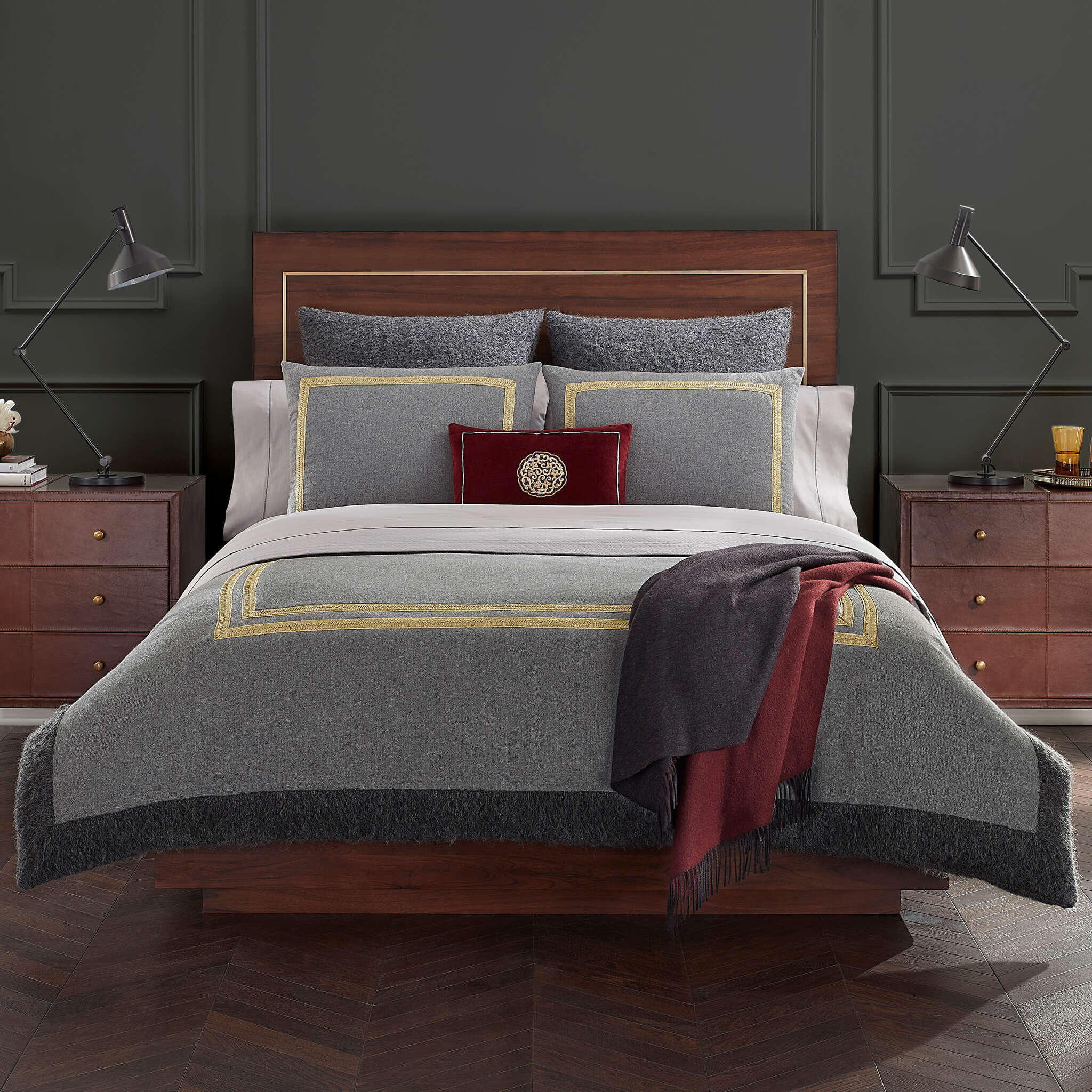 Our limited-edition Cadetto is inspired by the designs of antique military fashion coats. Sumptuous Alpaca and cotton yarns are delicately woven together, while metallic golden braids frame the bed. This resplendent collection is finished with a furry mohair border, exuding tailored sophistication and splendor.