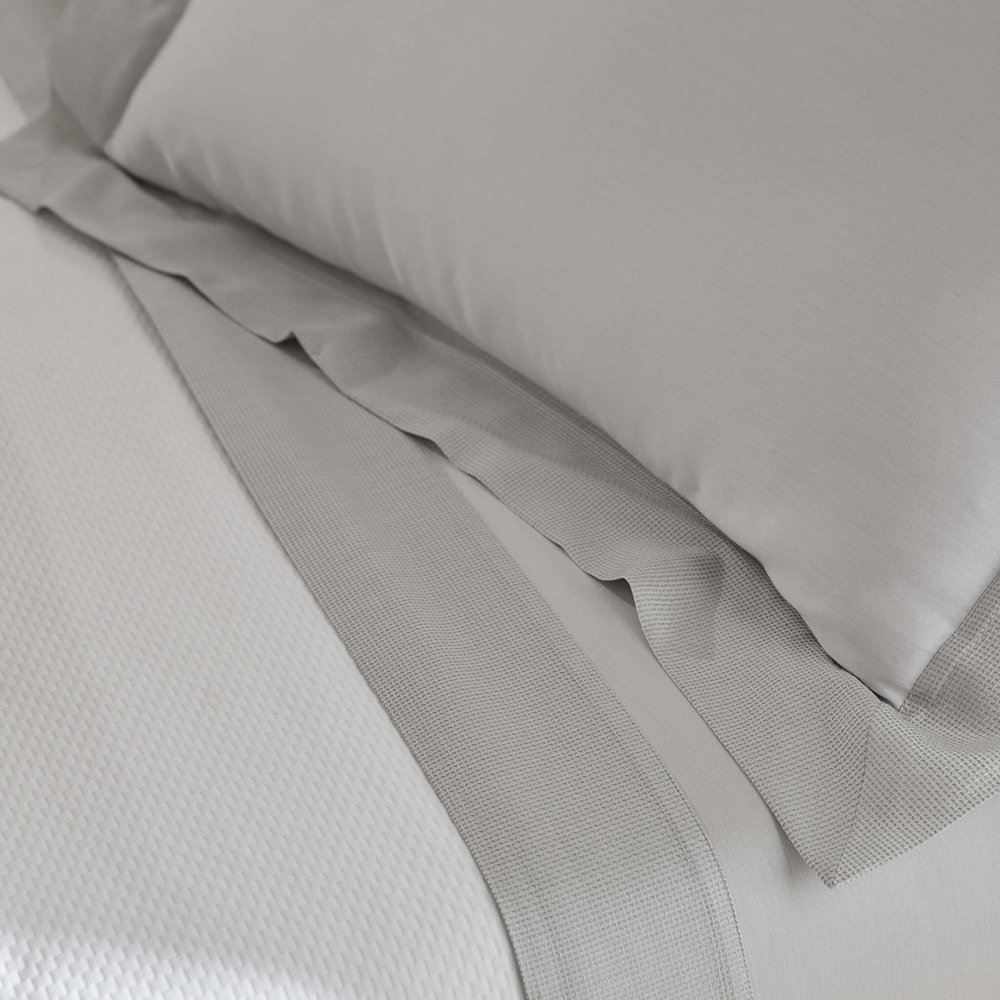 Carlotta, a captivating yarn-dyed jacquard cuff collection crafted in Italy from long-staple cotton, draws inspiration from the delicate lace texture found in our esteemed Tivoli collection. With meticulous craftsmanship, it weaves visual interest and offers a luxurious tactile experience. Imagine the gentle touch of its textured cuff against a backdrop of solid sateen, creating an ensemble that whispers elegance.
