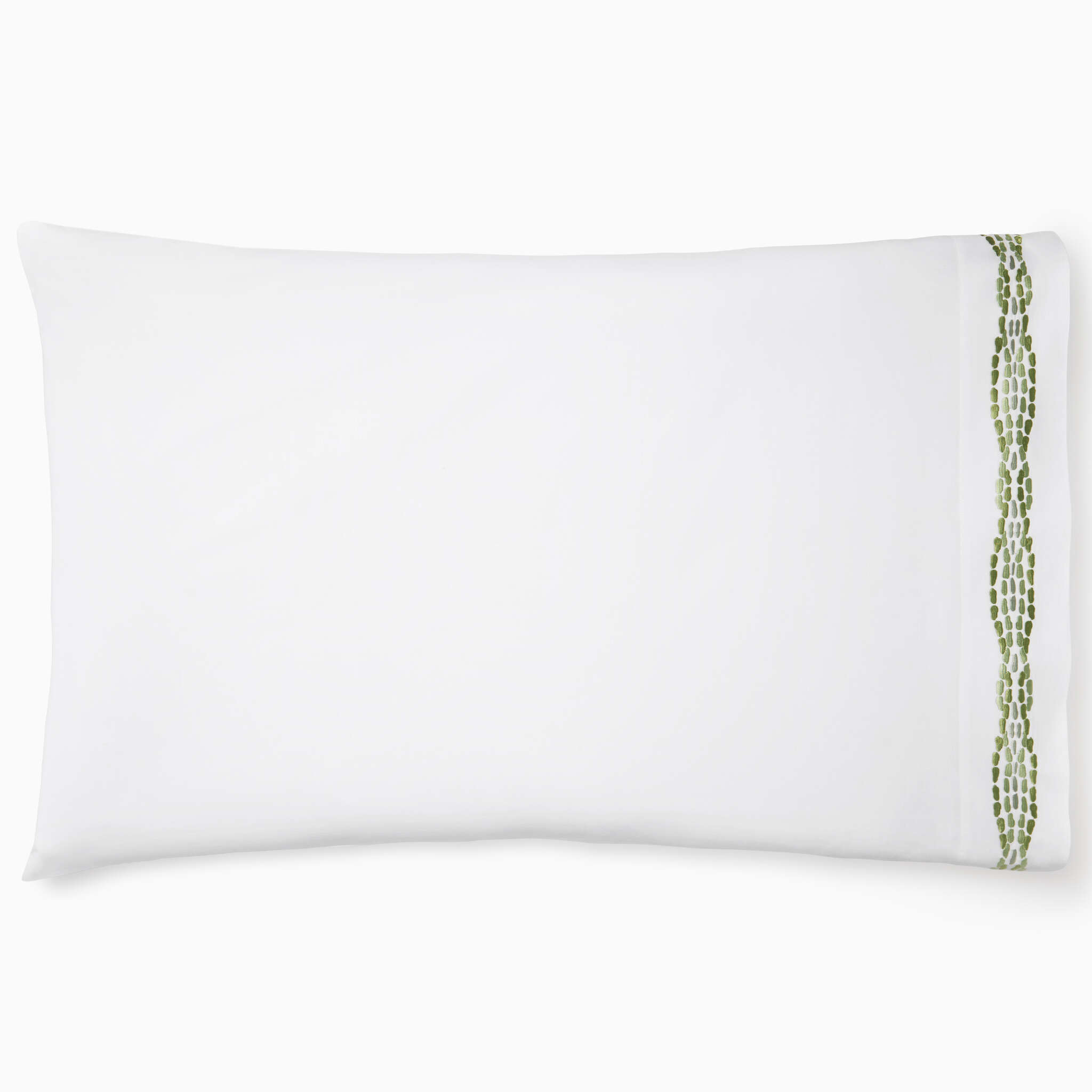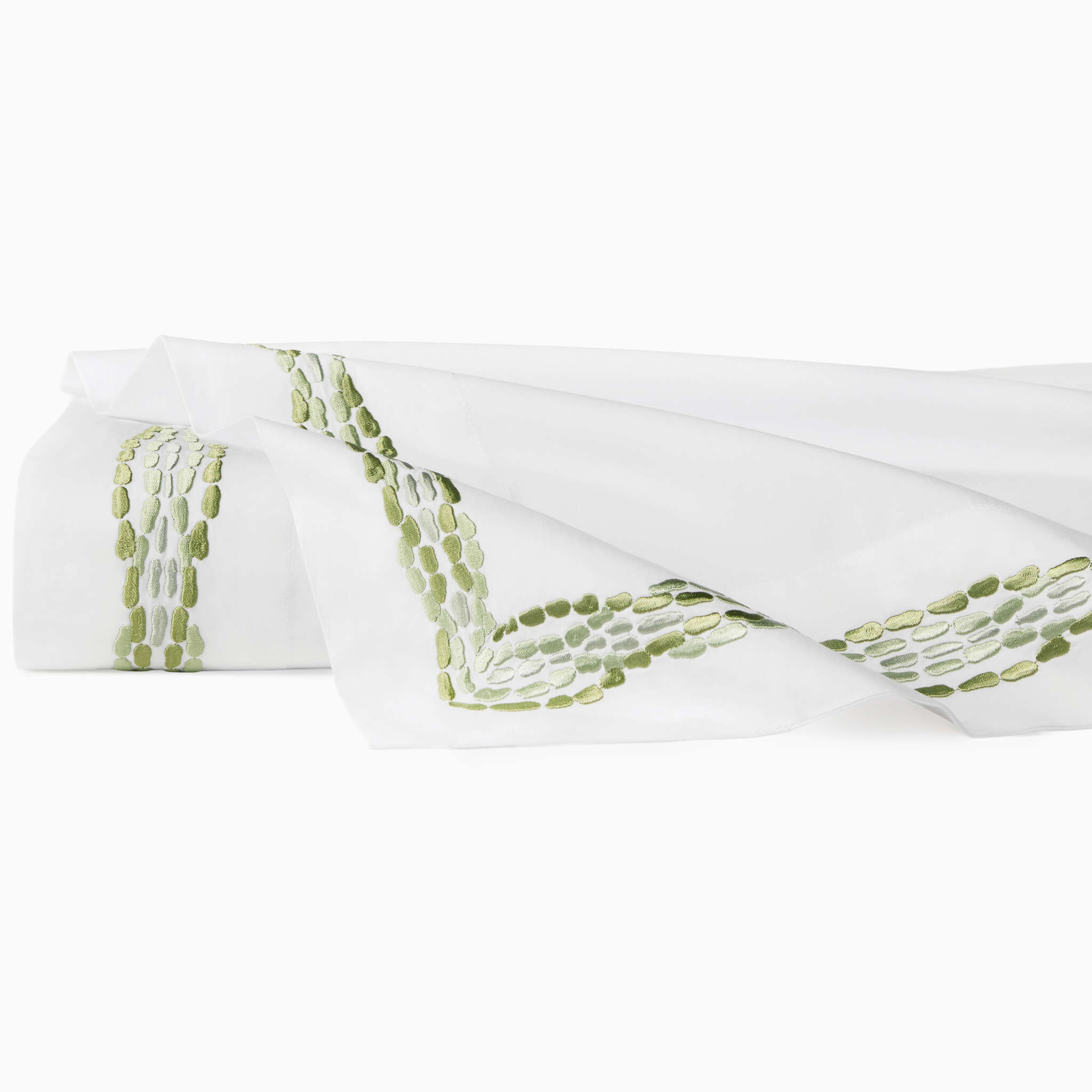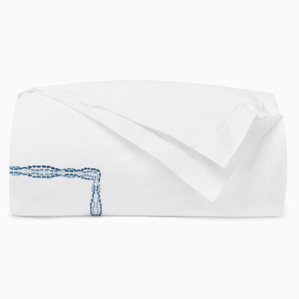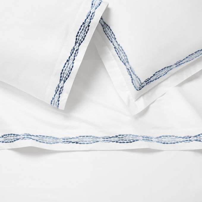 Originally designed in 1960 and inspired by the Greek historical city of Mystras, this iconic Cobblestones motif reflects Scalamandré’s commitment to timeless elegance. Once rendered in single-color printed cotton, Cobblestones has now been reimagined with a fresh, transitional sensibility for today’s design aesthetics. This updated version marries the pattern’s rich Byzantine roots with a contemporary softness: a watercolor wash effect brings depth and nuance to the print design, while the embroidered elements of this Italian-crafted bedding collection lend added dimension and tactile luxury. Cobblestones offers the perfect balance of classical inspiration and modern refinement, inviting a piece of Greece’s storied heritage into your home.