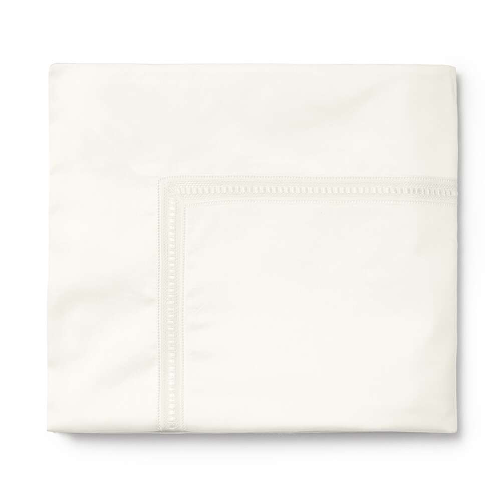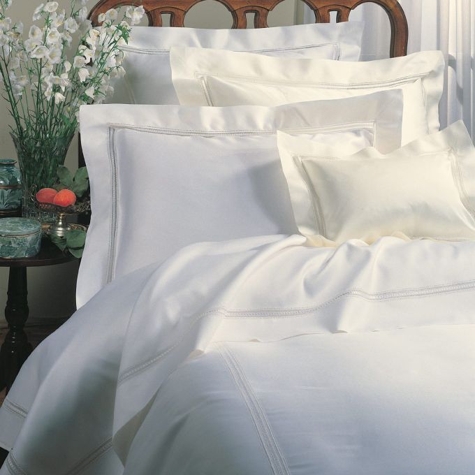 Hem: Knife-edge hem on Duvet Cover. Hemstitch on Shams, Flat Sheet, and Pillowcases. Plain hem on Bed Skirt.