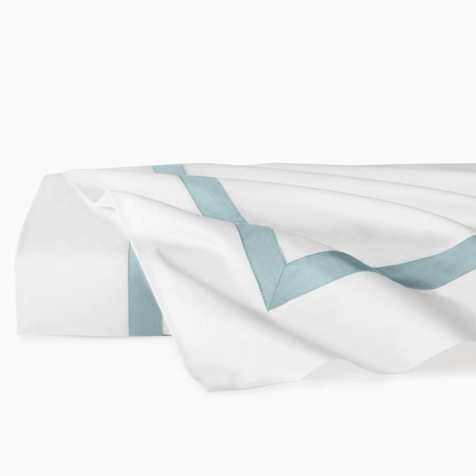 The understated sophistication of Estate's crisp white, Italian-woven long-staple cotton base is an immaculate backdrop for lustrous sateen appliqué detail, beautifully bordering this collection to create a sense of tailored elegance.